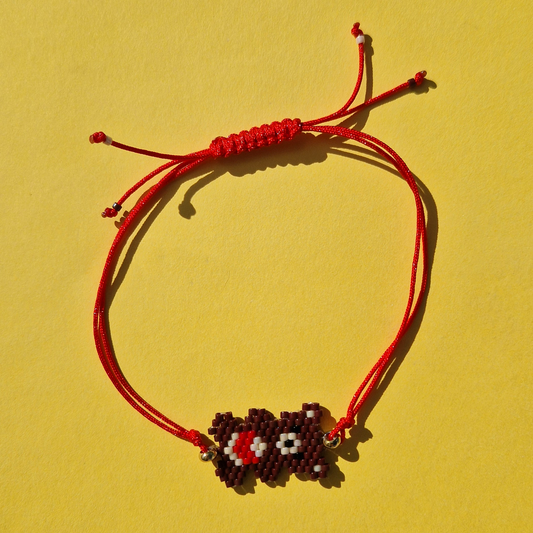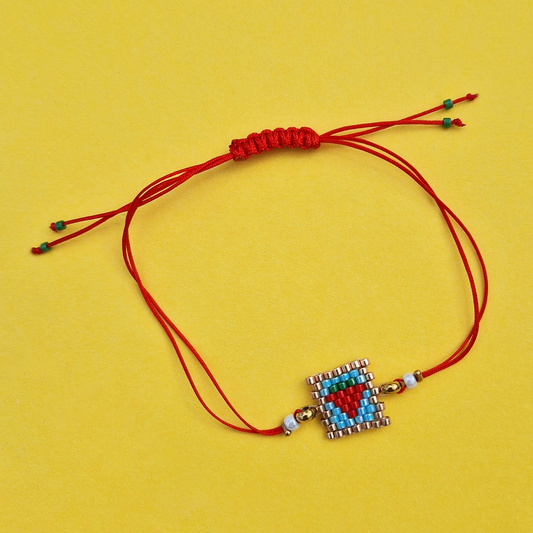 Μαρτάκι Χειροποίητο Αρκουδάκι με Κόκκινη Καρδιά από Χάντρες Miyuki και Μακραμέ για Ενήλικες και Παιδιά