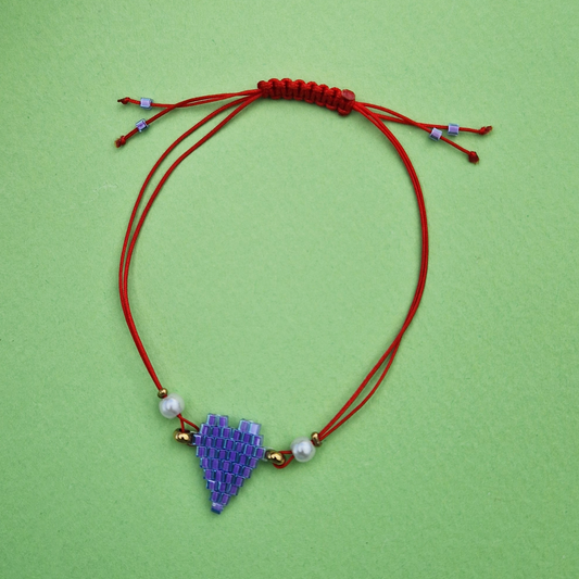 Μαρτάκι Χειροποίητο Λιλά Καρδιά με Ακρυλικές Πέρλες από Χάντρες Miyuki και Μακραμέ για Ενήλικες και Παιδιά