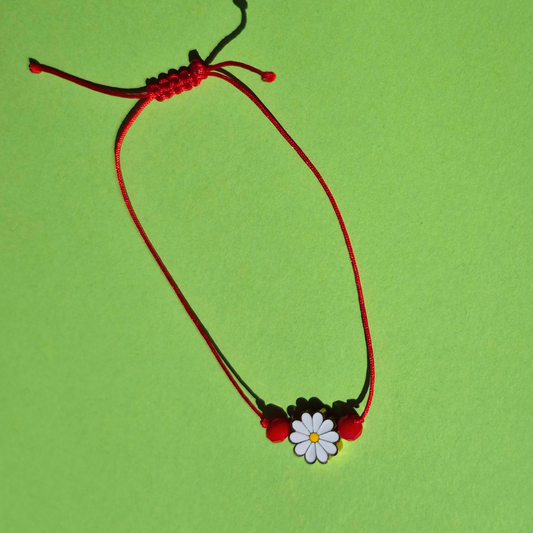 Κόκκινο Βραχιόλι με Ατσάλινο Στοιχείο Λουλούδι και Κόκκινο Κρυσταλλάκι με Μακραμέ Κούμπωμα