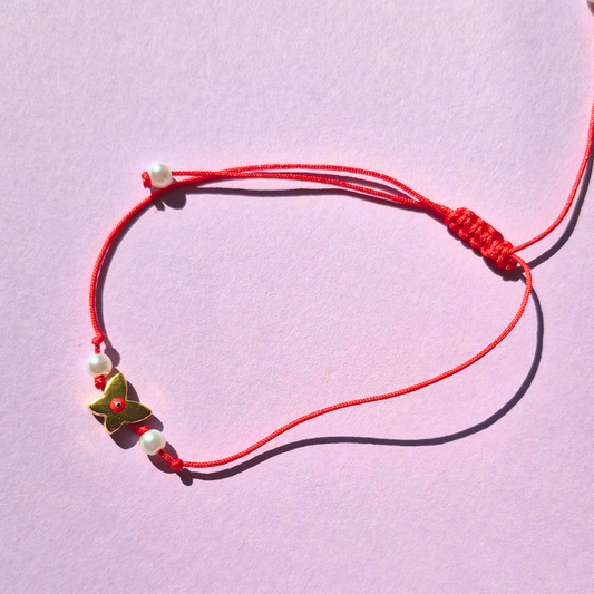 Κόκκινο Βραχιόλι Μεταλλική Ζάμακ Πεταλούδα με Σμάλτο και Πέρλα με Μακραμέ Κούμπωμα