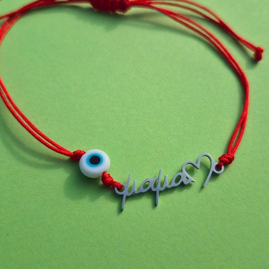 Κόκκινο Βραχιόλι με Ατσάλινο στοιχείο 'ΜΑΜΑ' και Ματάκι με Μακραμέ Κούμπωμα