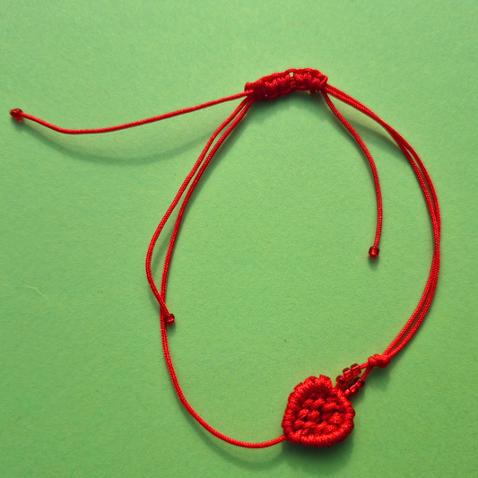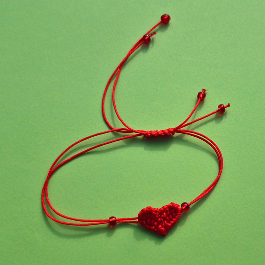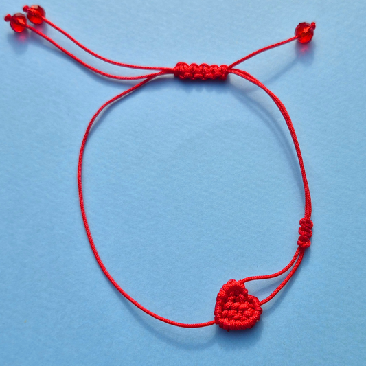 Κόκκινο Βραχιόλι Χειροποίητο Μακραμέ με Κόκκινη Καρδιά Μικρή με Xαντράκια
