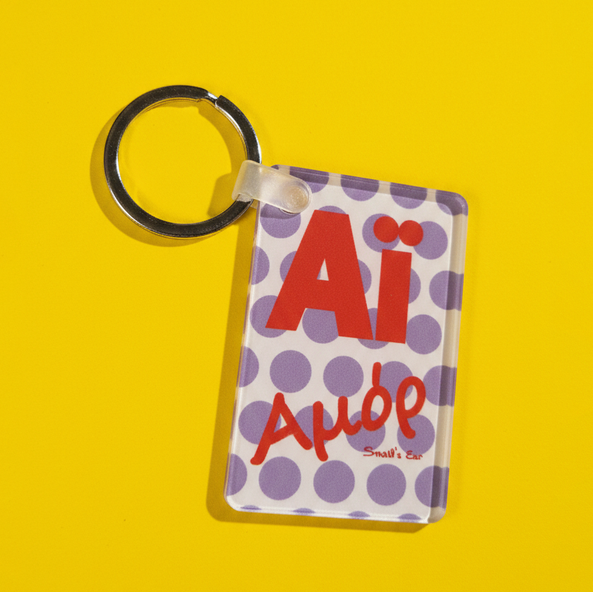 Ζήστε το δικό σας μεξικάνικο δράμα με το ακρυλικό μπρελόκ «ΑΪ ΑΜΟΡ»! Σε υπέροχο λιλά πουά χρώμα, αυτό το αξεσουάρ είναι εμπνευσμένο από το πάθος των 90s τηλενοβελών. Ιδανικό για τα κλειδιά, την τσάντα σας, αλλά και ως το πιο πρωτότυπο δώρο Αγίου Βαλεντίνου με δόση χιούμορ, φέρνει νοσταλγία και cult στυλ σε κάθε σας εμφάνιση!