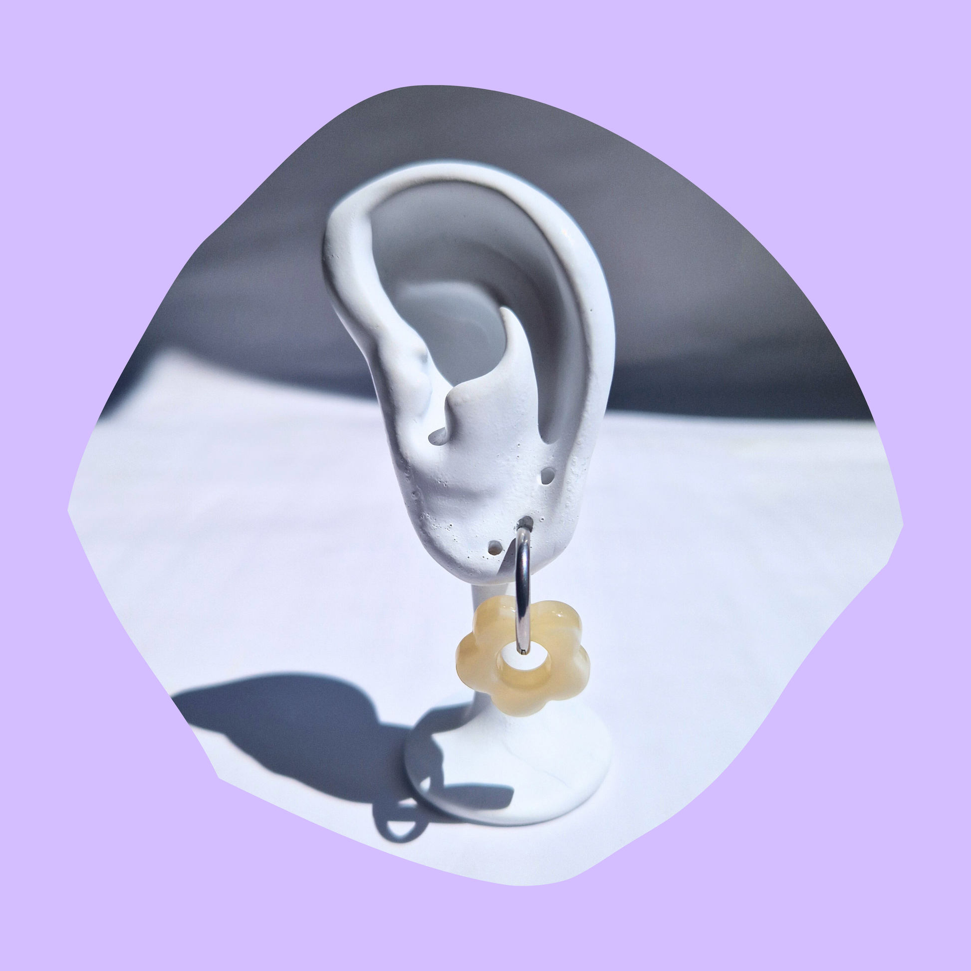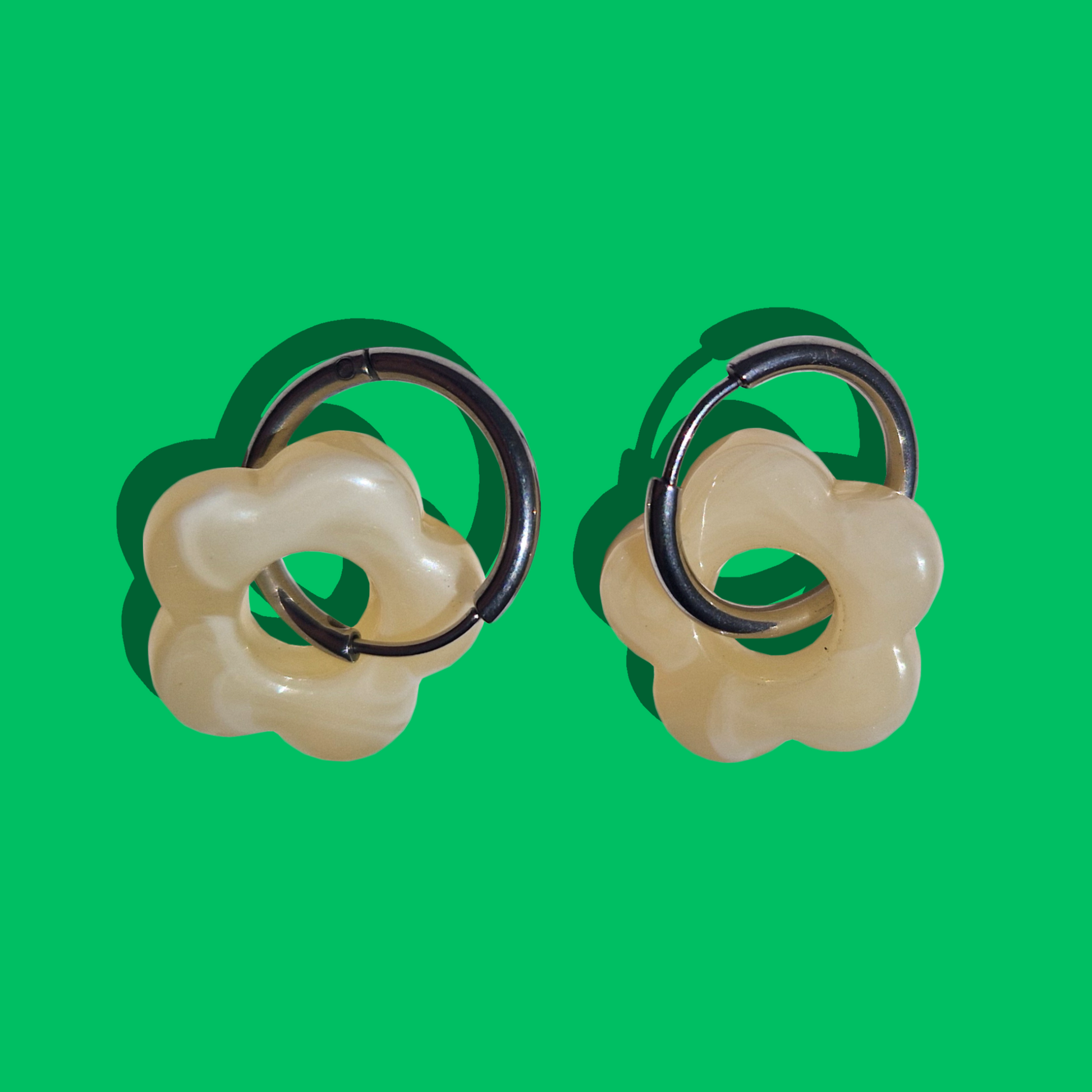Αναδείξτε τη φυσική σας κομψότητα με τα ατσάλινα ασημένια σκουλαρίκια κρίκους με κρεμ λουλούδια. Υποαλλεργικά, δεν μαυρίζουν και χαρίζουν διακριτική λάμψη και ρομαντισμό στην κάθε σας εμφάνιση. Ιδανικά για όλες τις ώρες, συνδυάζουν ανθεκτικότητα με στυλ. Διατίθενται και με χρυσούς ατσάλινους κρίκους.