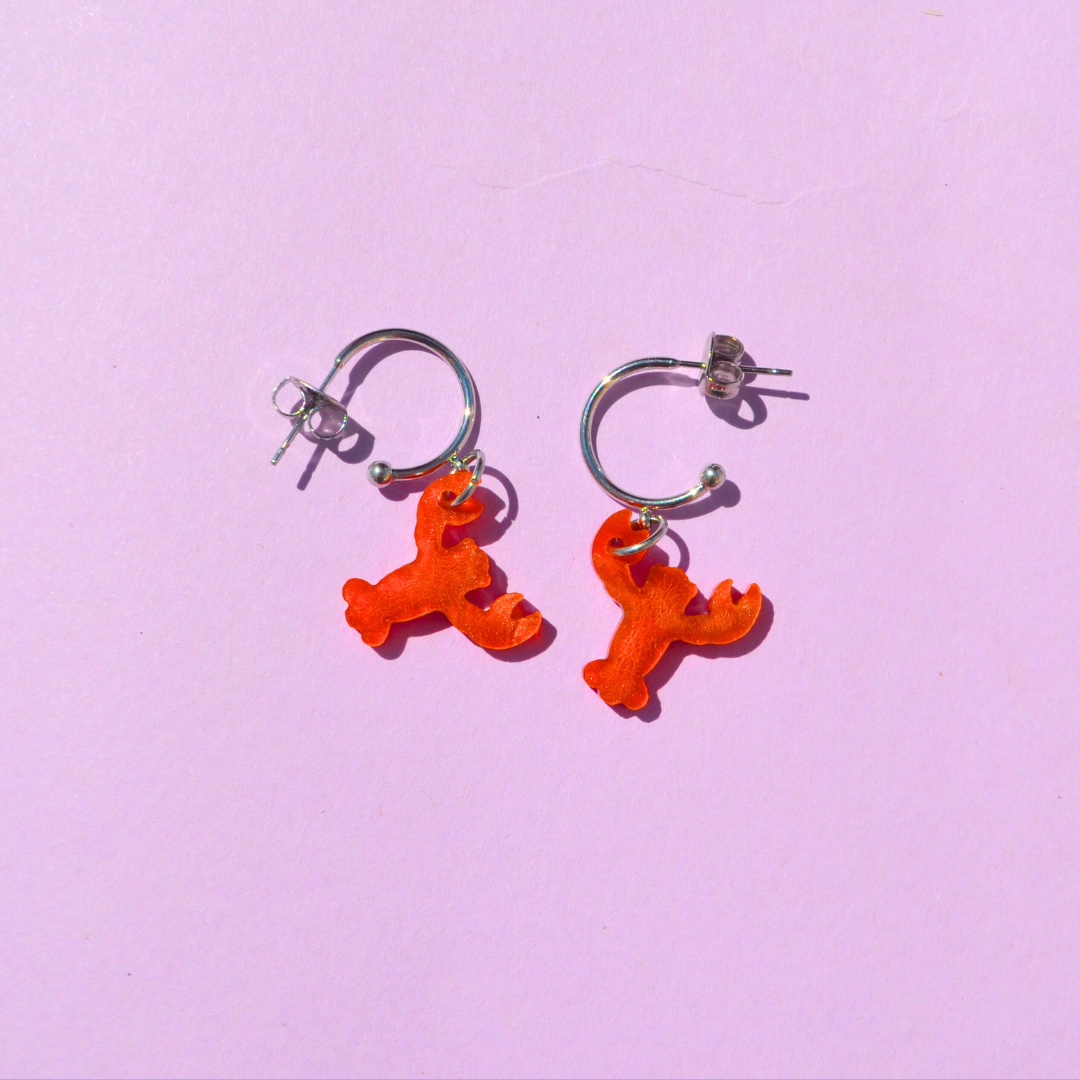 Ατσάλινα Ασημένια Σκουλαρίκια Κρίκοι με Αστακούς Κεραμιδί Περλέ Lobster