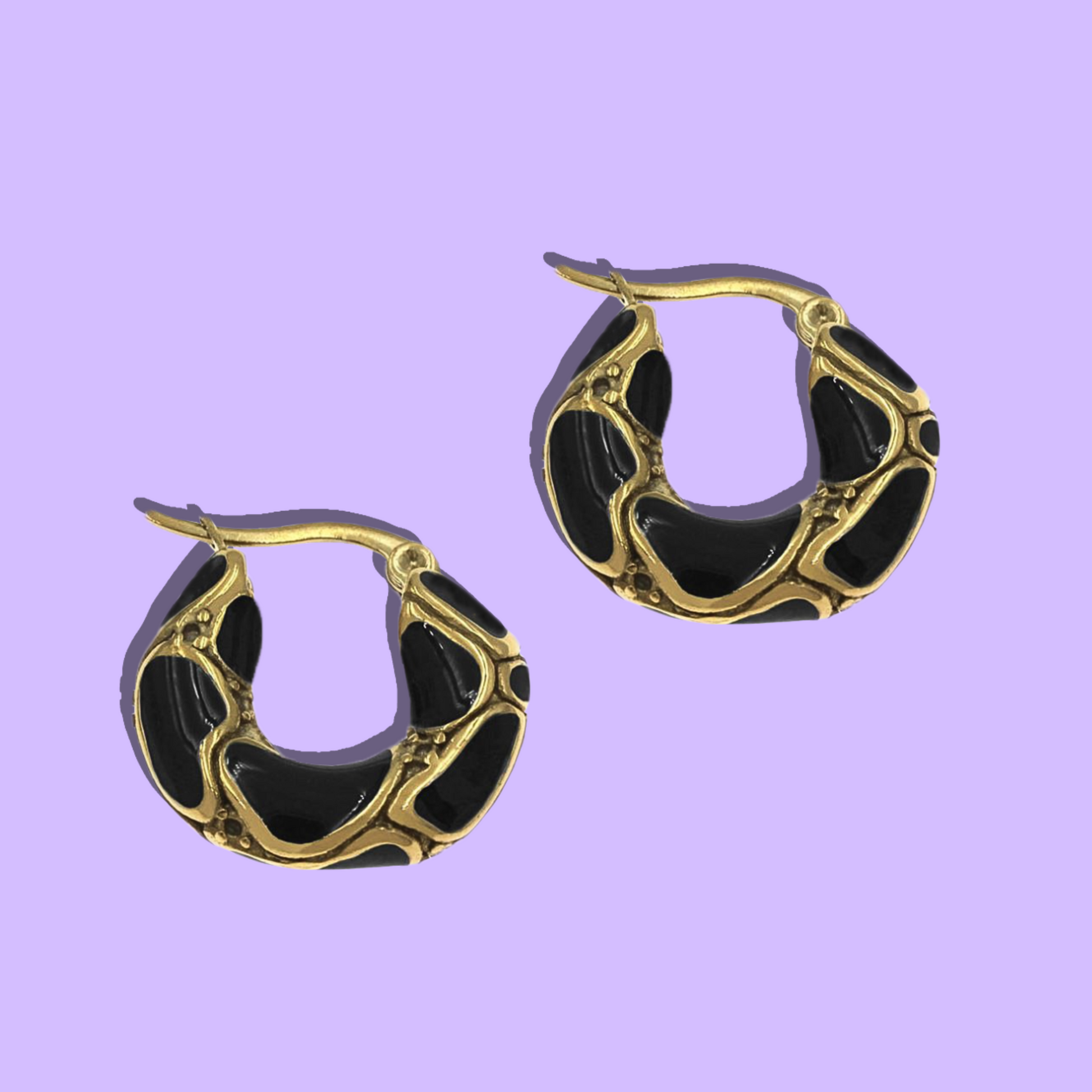 Ανανεώστε το στυλ σας με τα ατσάλινα χρυσά σκουλαρίκια κρίκοι με μαύρο σμάλτο, το απόλυτο must-have για τη νέα σεζόν. Κομψά, μοντέρνα και ευκολοφόρετα, ταιριάζουν ιδανικά σε κάθε περίσταση, από το πρωί ως το βράδυ. Κατασκευασμένα από υποαλλεργικό ατσάλι που δεν μαυρίζει, χαρίζουν λάμψη και διαχρονική φινέτσα που θα αναδείξει κάθε σας εμφάνιση.