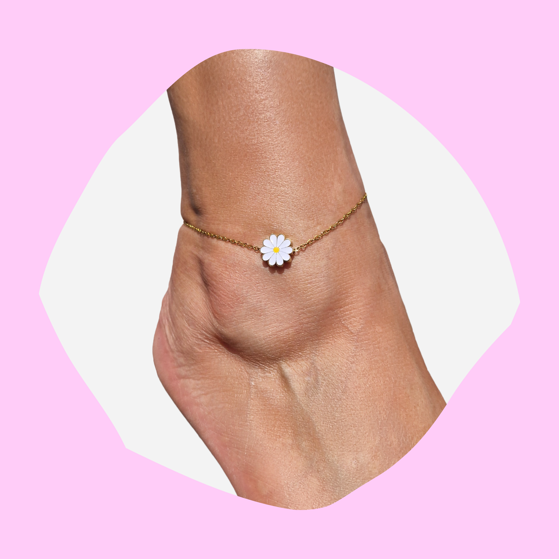 Φέρε την ανεμελιά του καλοκαιριού στα πόδια σου με το Βραχιόλι Ποδιού από Ατσάλινη Χρυσή Αλυσίδα και Ατσάλινο Στοιχείο Μαργαρίτα. Κομψό, δροσερό και ρομαντικό, είναι το απόλυτο καλοκαιρινό αξεσουάρ. Δεν μαυρίζει, είναι υποαλλεργικό και απογειώνει κάθε beach ή casual εμφάνιση.