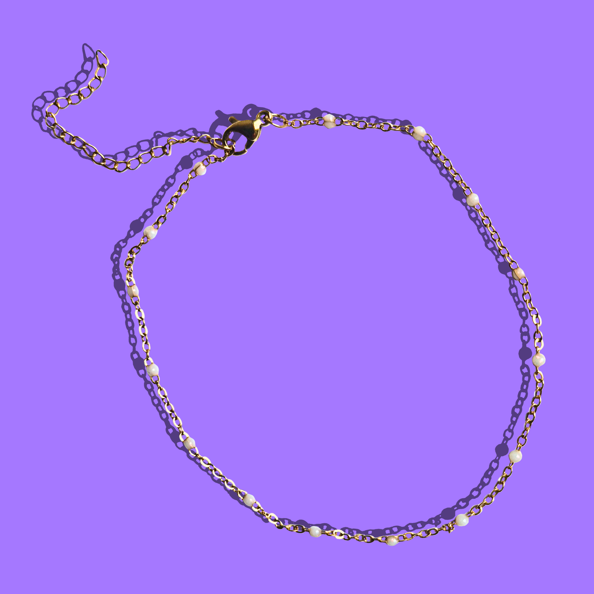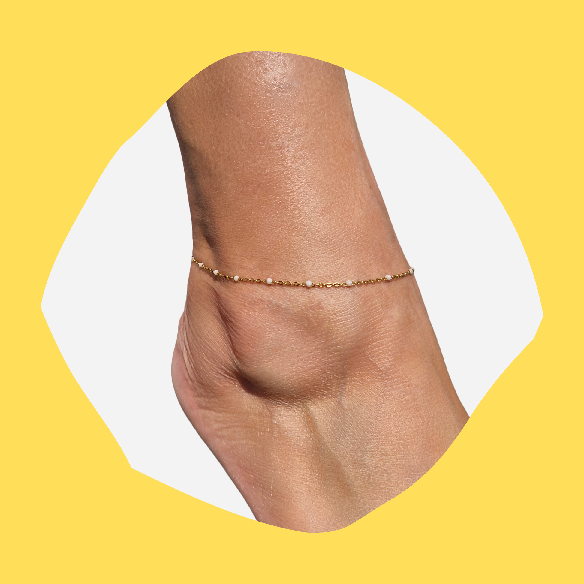 Βραχιόλι Ποδιού από Ατσάλινη Χρυσή Αλυσίδα με Λευκές Χάντρες