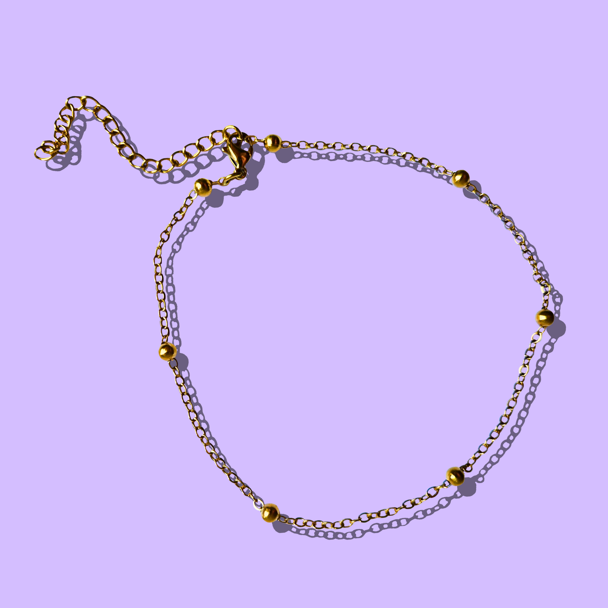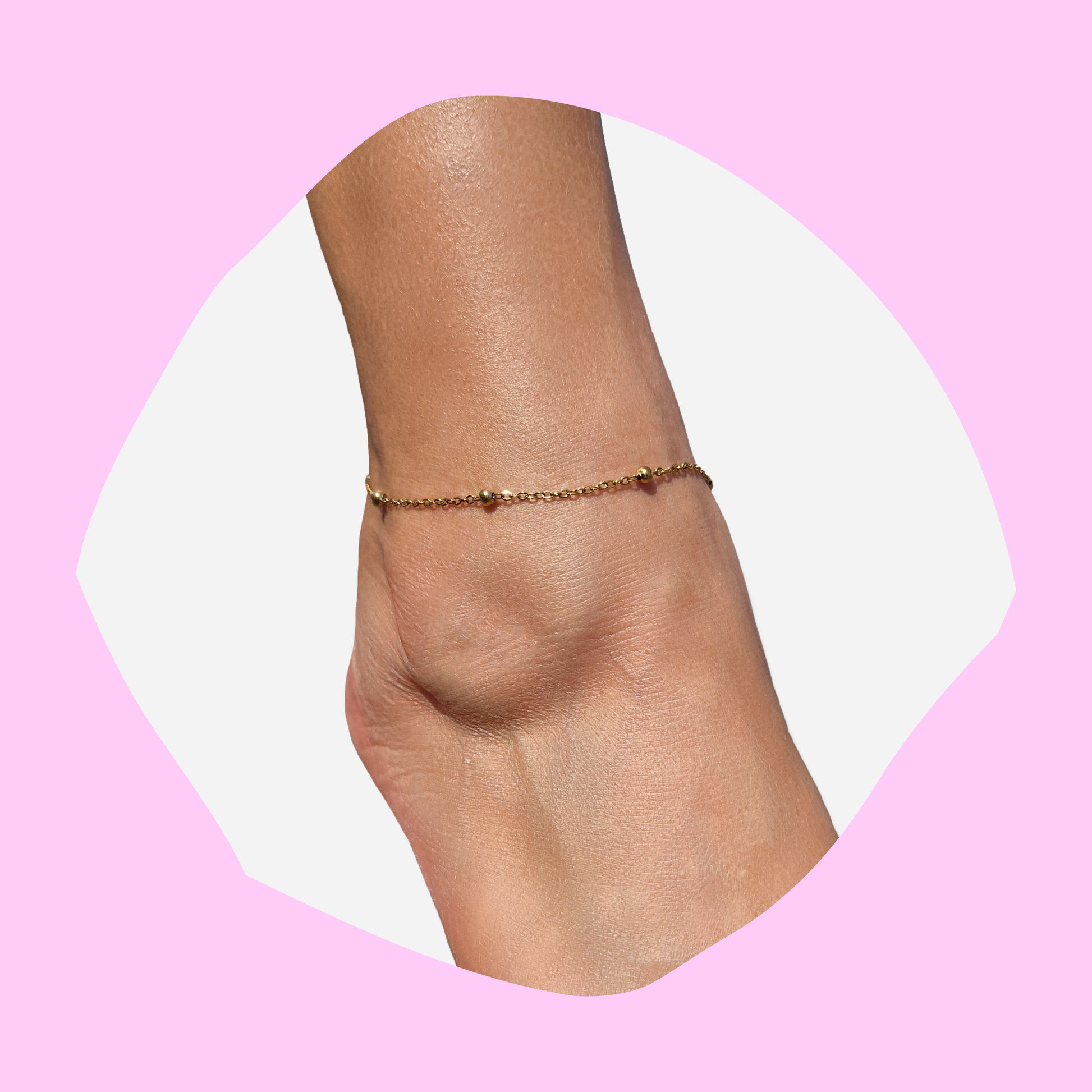 Λάμψε διακριτικά με το βραχιόλι ποδιού από ατσάλινη χρυσή αλυσίδα με χρυσές μπιλίτσες – η τέλεια προσθήκη στο καλοκαιρινό σου στυλ. Κομψό, μοντέρνο και ιδανικό για την παραλία ή τις βραδινές εμφανίσεις. Ανθεκτικό, υποαλλεργικό, δεν μαυρίζει. Απόλυτο must-have για κάθε καλοκαιρινή εμφάνιση.