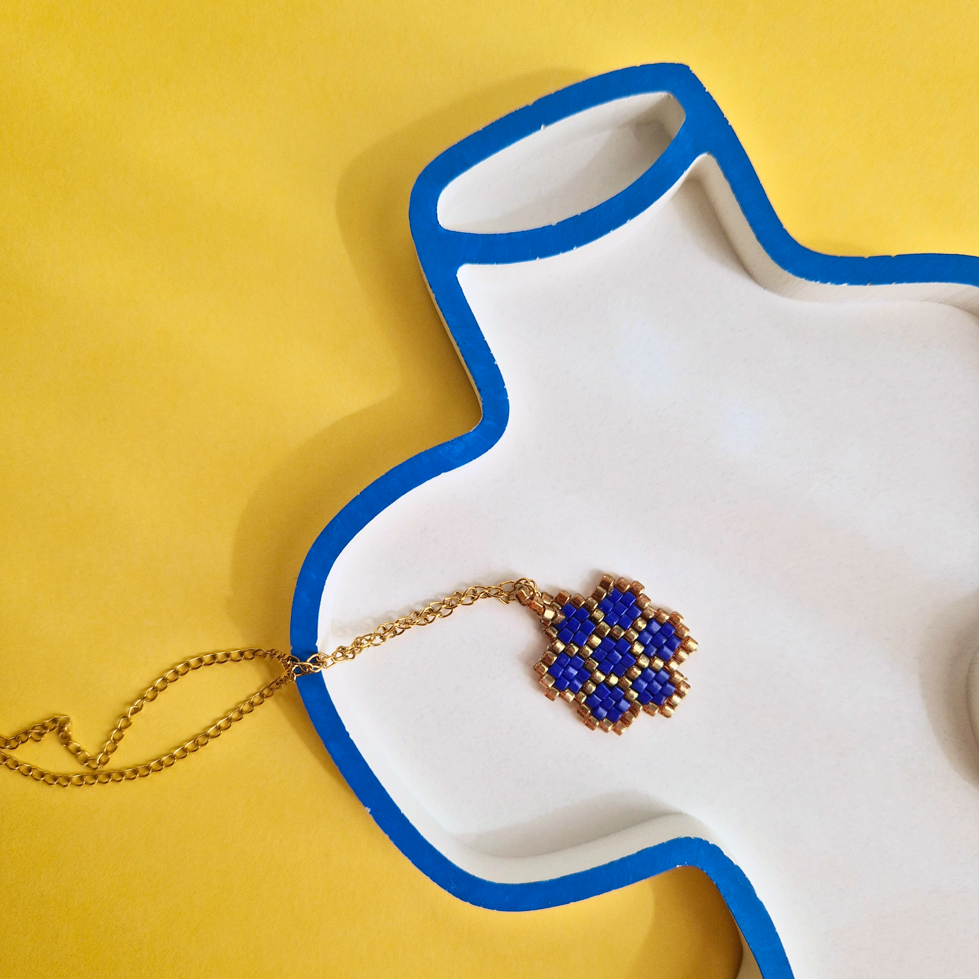 Ανακαλύψτε την κομψότητα με το Χειροποίητο Κολιέ Μπλε-Χρυσό Λουλούδι από Χάντρες Miyuki, δεμένο σε Ατσάλινη Χρυσή Αλυσίδα. Ένα κόσμημα που αποπνέει αρμονία και φινέτσα, ιδανικό για κάθε περίσταση. Επιλέξτε ανάμεσα σε ατσάλινη χρυσή ατσάλινη ασημένια αλυσίδα ή πετονιά. Φτιαγμένο κατόπιν παραγγελίας, ειδικά για εσάς!