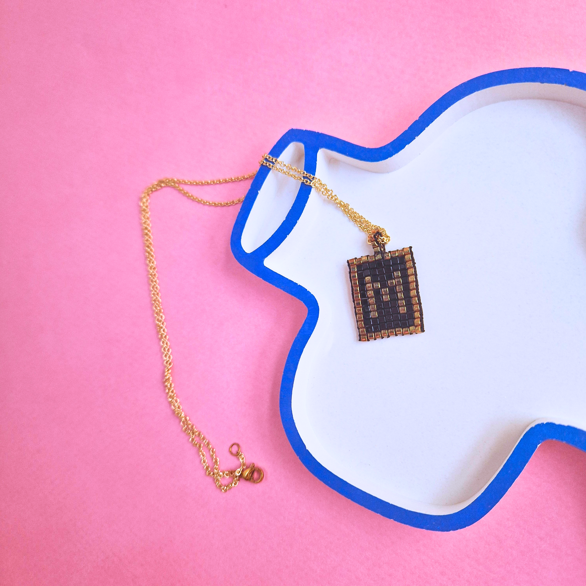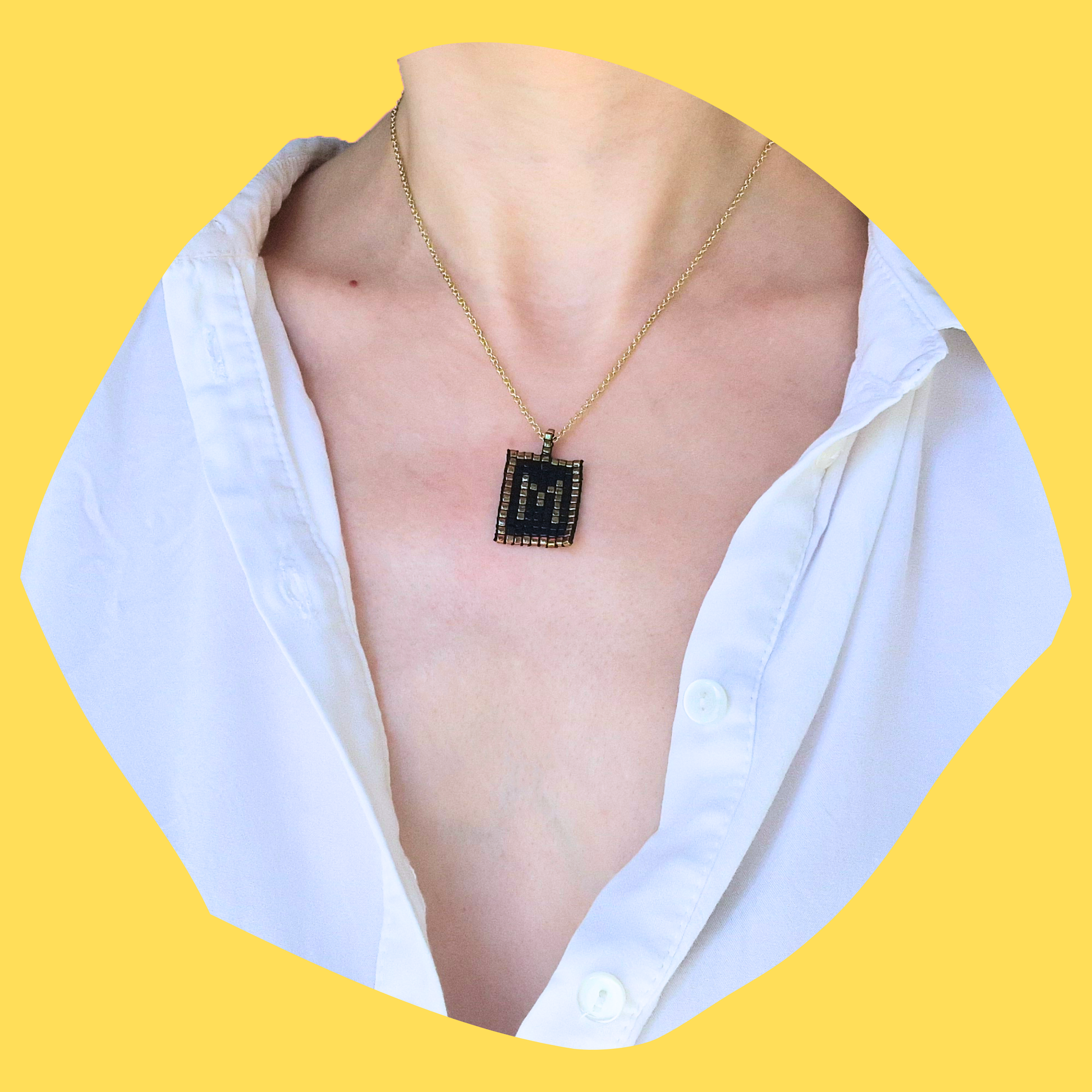 Ανακαλύψτε την απόλυτη κομψότητα με το Χειροποίητο Κολιέ Χρυσού Μονογράμματος σε Χρυσό Τετράγωνο Πλαίσιο, φτιαγμένο με χάντρες Miyuki και κρεμασμένο σε ατσάλινη χρυσή αλυσίδα ή πετονιά, ανάλογα με την προτίμησή σας. Επιλέξτε το μονόγραμμα που επιθυμείτε και εμείς το δημιουργούμε κατόπιν παραγγελίας. Ιδανικό για να αναδείξετε το προσωπικό σας στυλ με διαχρονική πολυτέλεια.