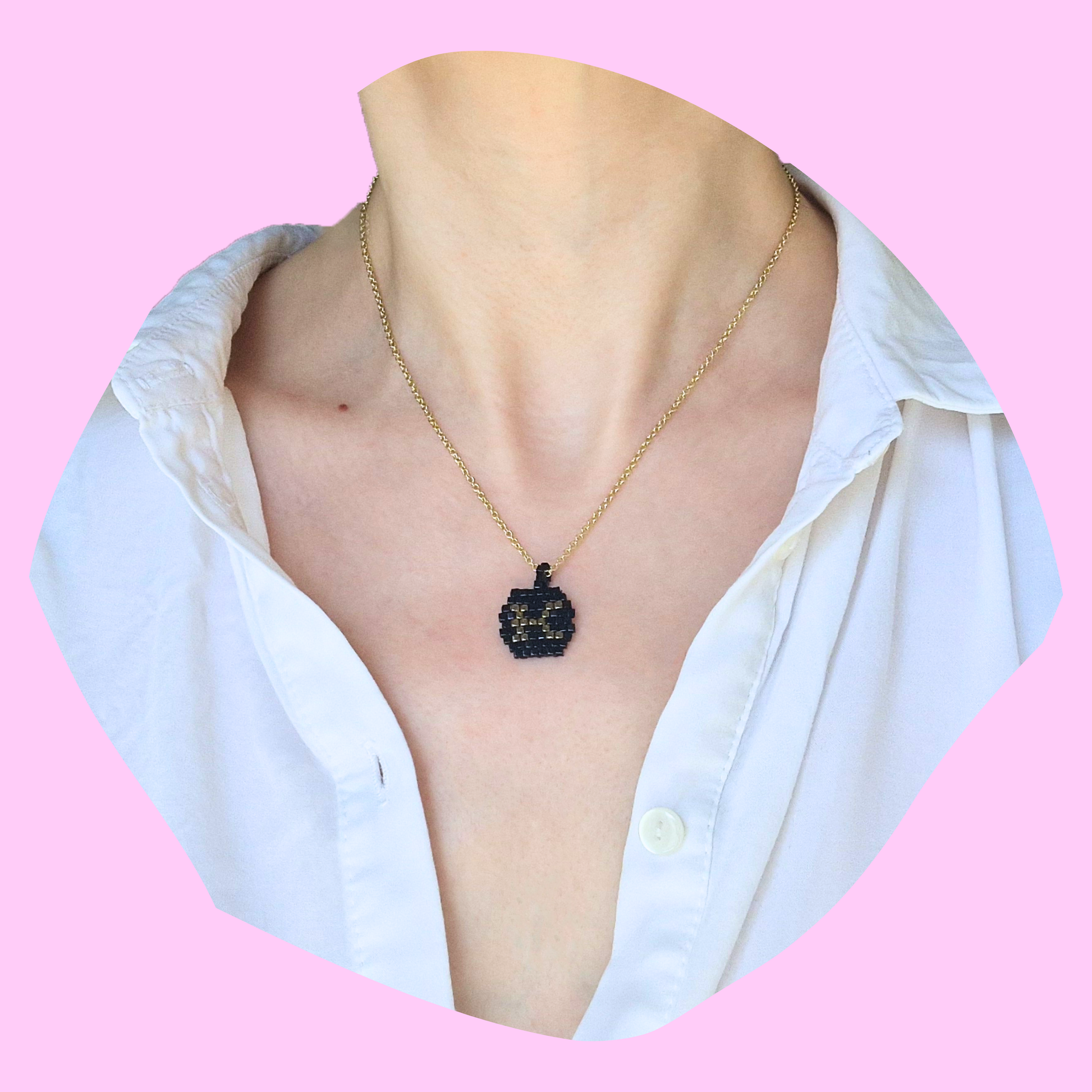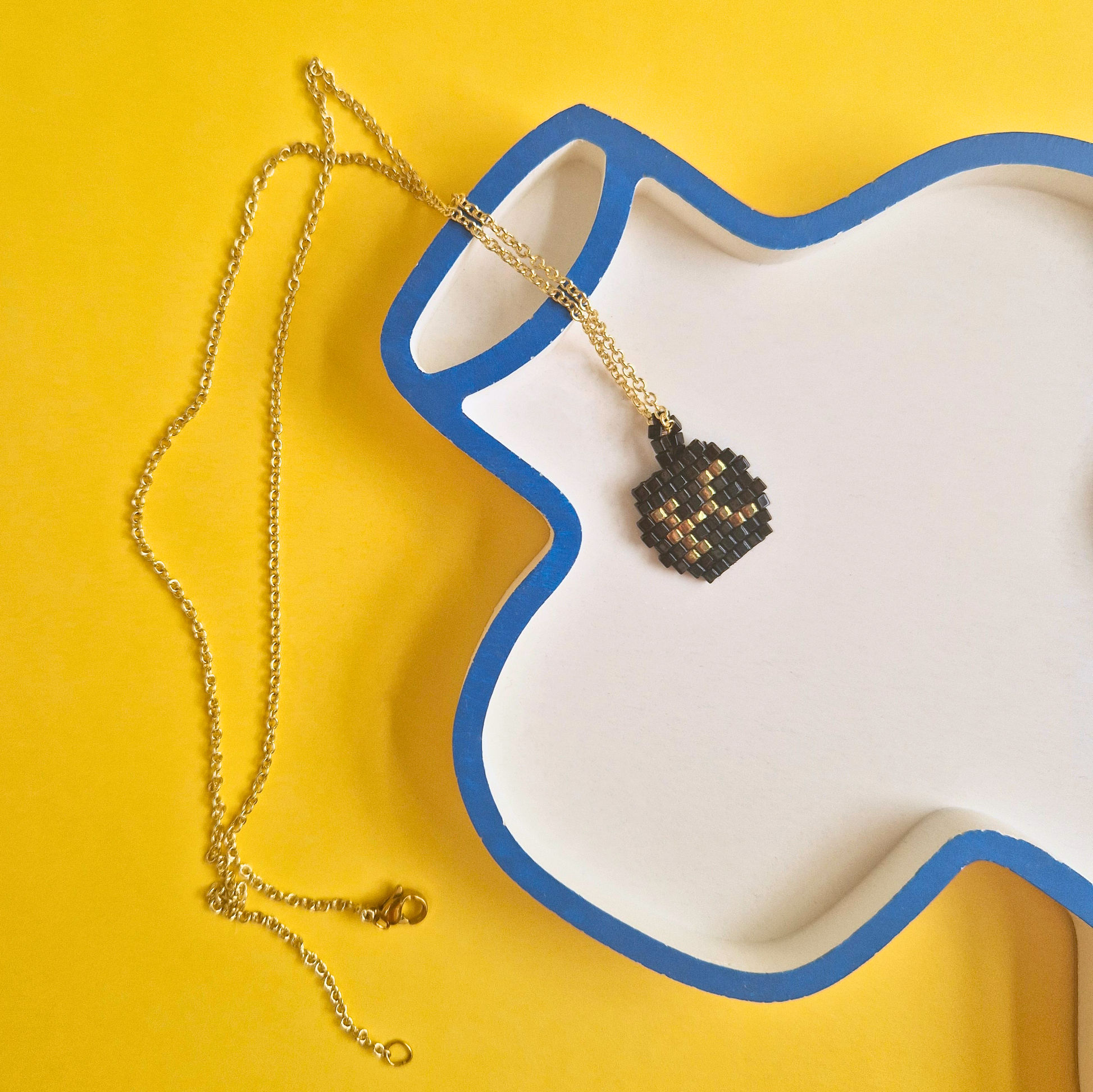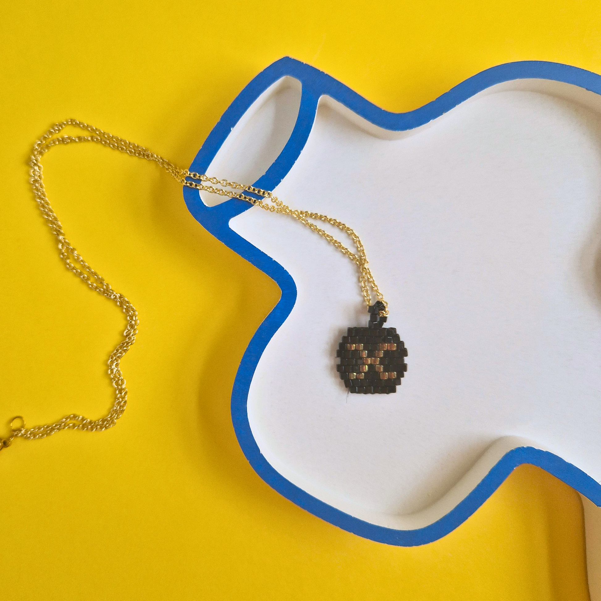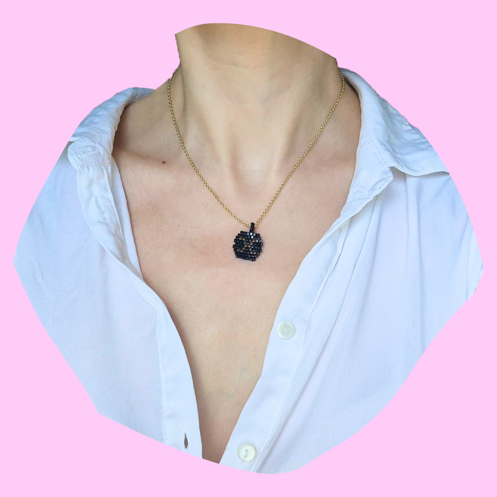 Ανακαλύψτε την αριστοκρατική ομορφιά του Χειροποίητου Κολιέ Χρυσού Μονογράμματος σε Μαύρο Φόντο, φτιαγμένο με περίτεχνες χάντρες Miyuki και κρεμασμένο σε ατσάλινη χρυσή αλυσίδα ή πετονιά, ανάλογα με την προτίμησή σας. Επιλέξτε το μονόγραμμα που επιθυμείτε και εμείς το δημιουργούμε κατόπιν παραγγελίας. Μοναδική κομψότητα!