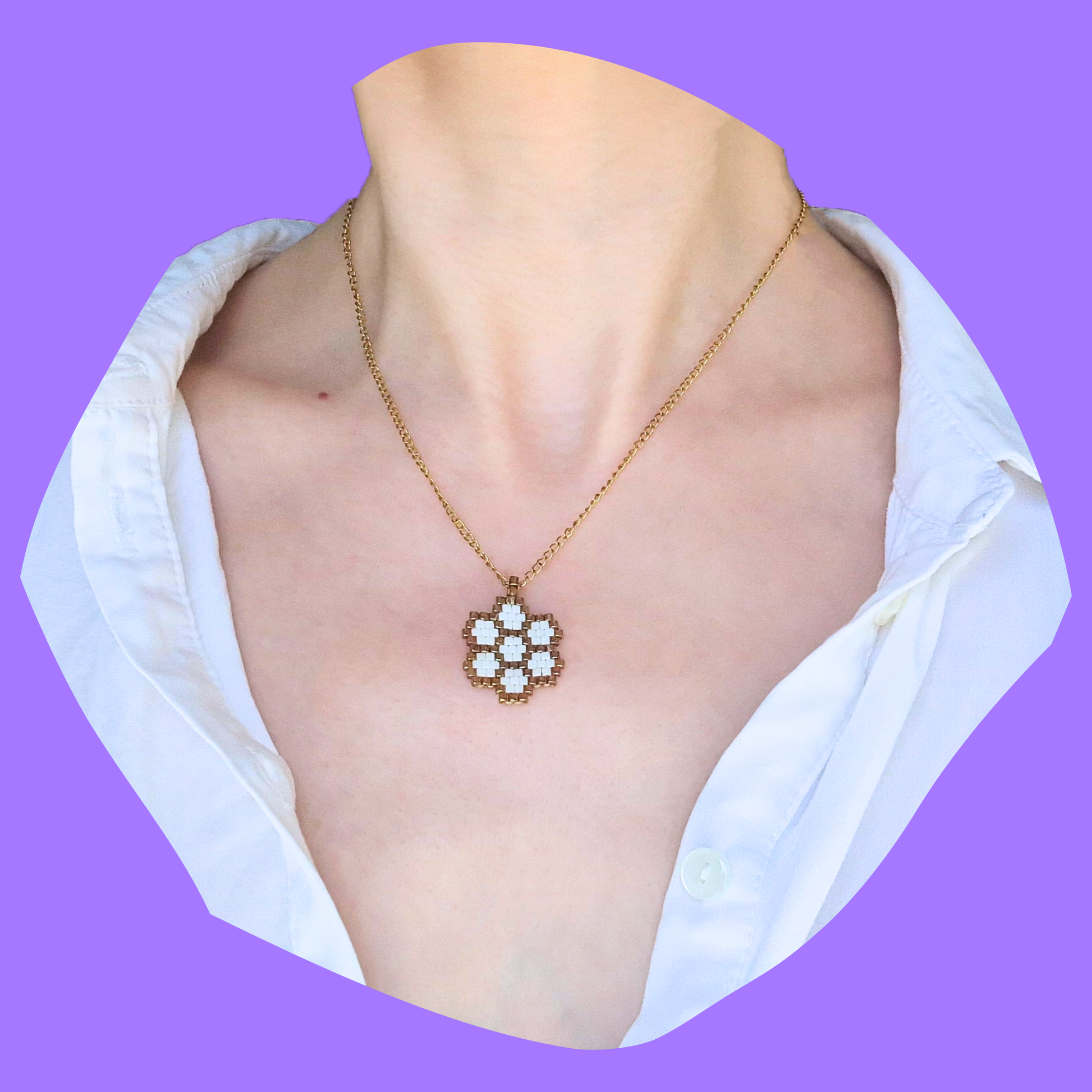 Χειροποίητο Κολιέ Λευκόχρυσο Λουλούδι από Χάντρες Miyuki σε Ατσάλινη Χρυσή Αλυσίδα