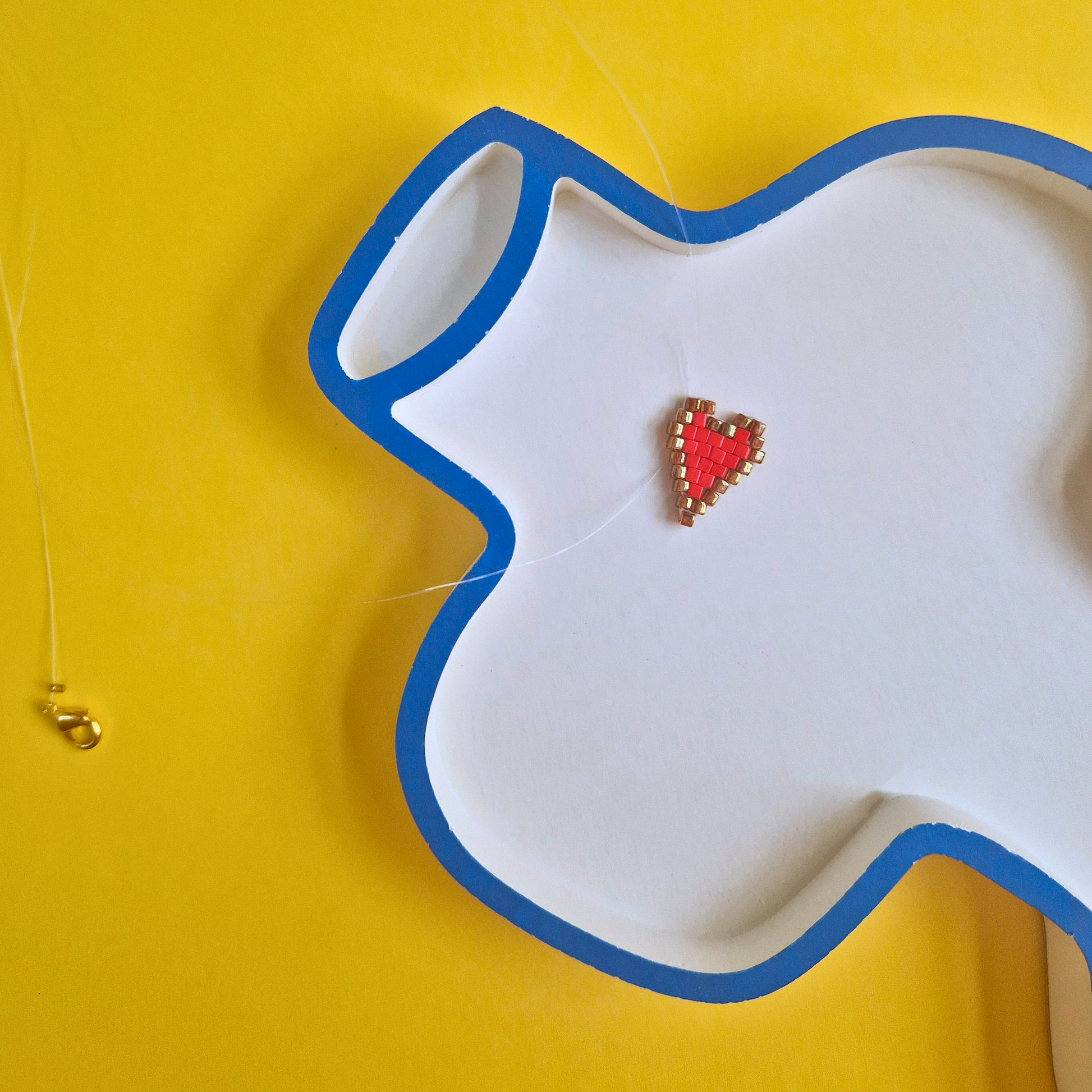 Αναδείξτε τα συναισθήματά σας με αυτό το χειροποίητο κολιέ που διαθέτει μια κόκκινη καρδιά από χάντρες Miyuki, διακοσμημένη με χρυσές χάντρες. Σε πετονιά ή ατσάλινη χρυσή αλυσίδα, ιδανικό για καθημερινή χρήση ή ειδικές στιγμές. Κατόπιν παραγγελίας, φτιάχνουμε το σχέδιο που επιθυμείτε και το αποστέλλουμε!