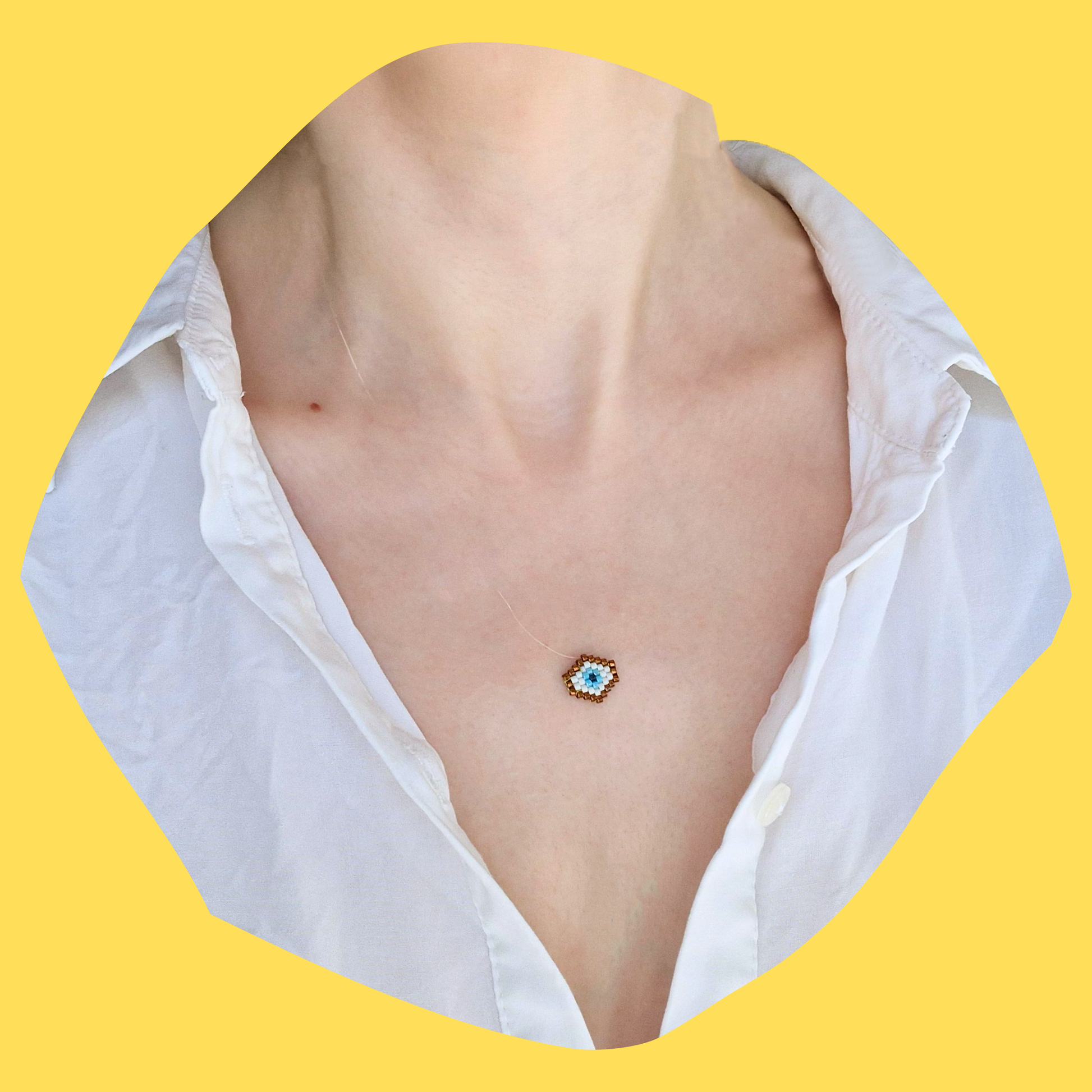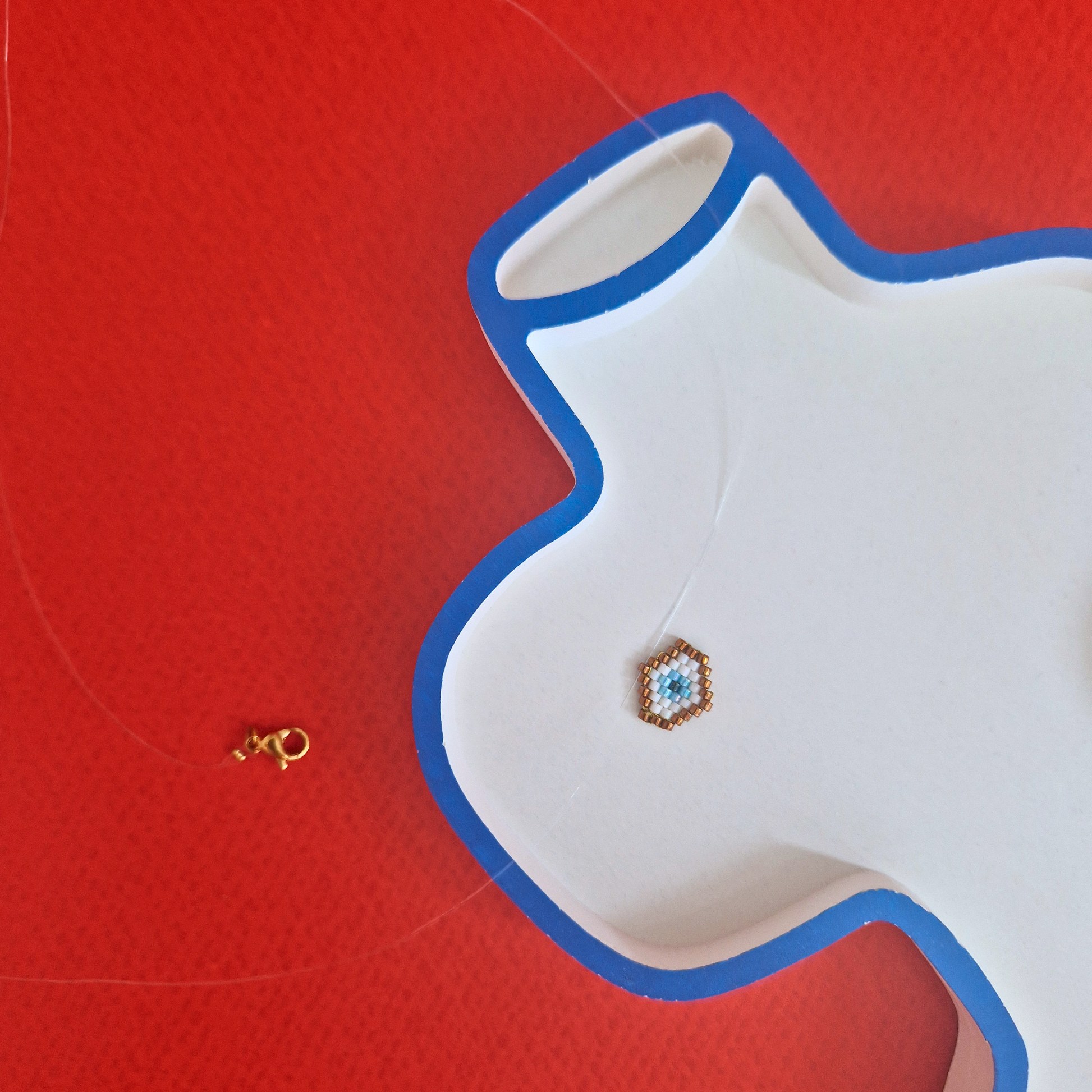 Αποκτήστε ένα μοναδικό χειροποίητο κολιέ με μικρό μάτι από χάντρες Miyuki σε λεπτή πετονιά, ιδανικό για να προσθέσετε κομψότητα και προστασία στο στυλ σας. Το μάτι, σύμβολο θετικής ενέργειας και προστασίας, φτιαγμένο με ακρίβεια, είναι ιδανικό για καθημερινή χρήση ή ειδικές περιστάσεις. Διαλέξτε αν το θέλετε με ατσάλινη χρυσή αλυσίδα ή πετονιά.