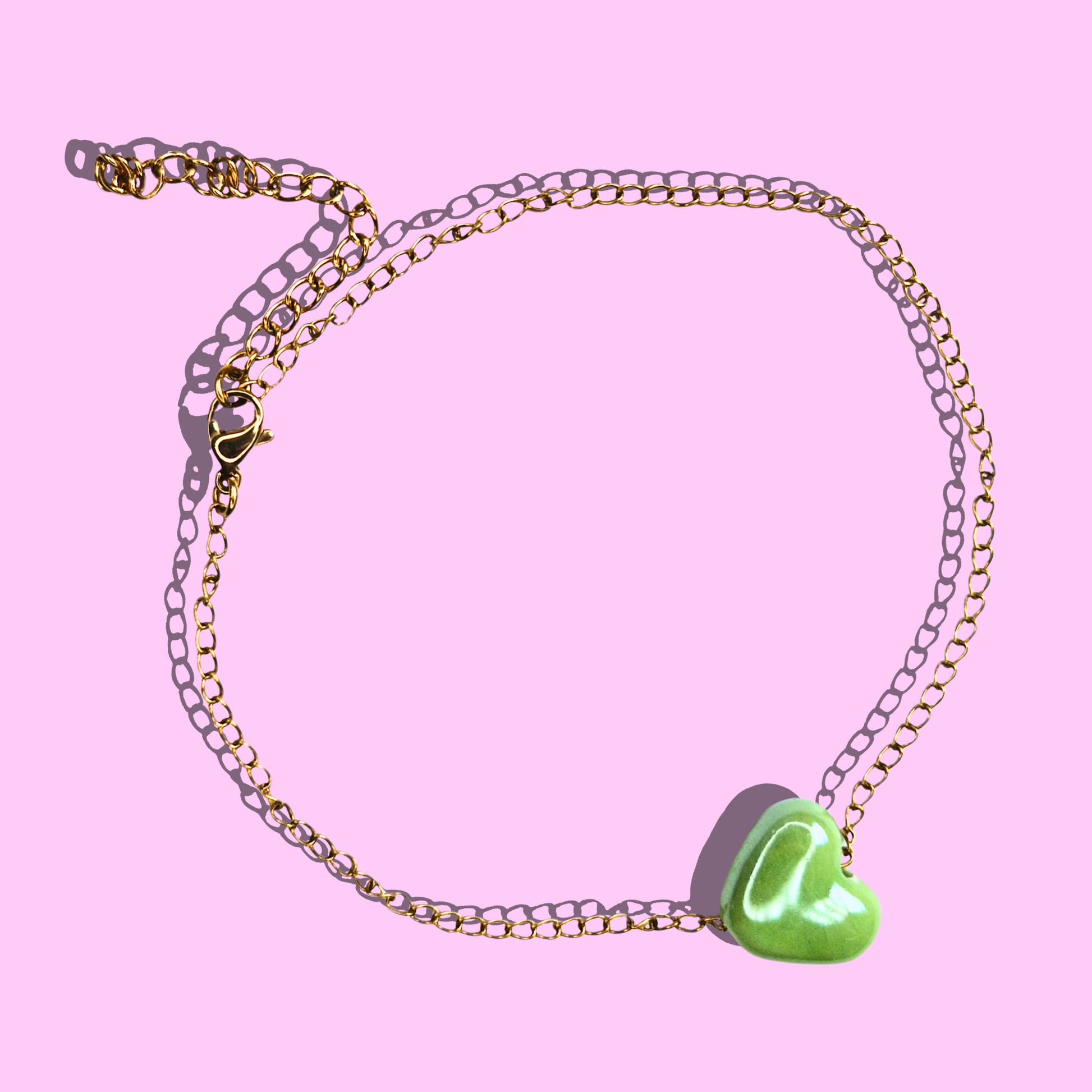 Δώσε χρώμα και συναίσθημα στο καλοκαίρι σου με το Βραχιόλι Ποδιού από Ατσάλινη Χρυσή Αλυσίδα με Κεραμική Λαχανί Καρδιά! Υποαλλεργικό, δεν μαυρίζει και αποπνέει στυλ και φρεσκάδα. Ιδανικό για παραλία και βόλτες. Διάλεξε την καρδιά στο χρώμα που σε εκφράζει!