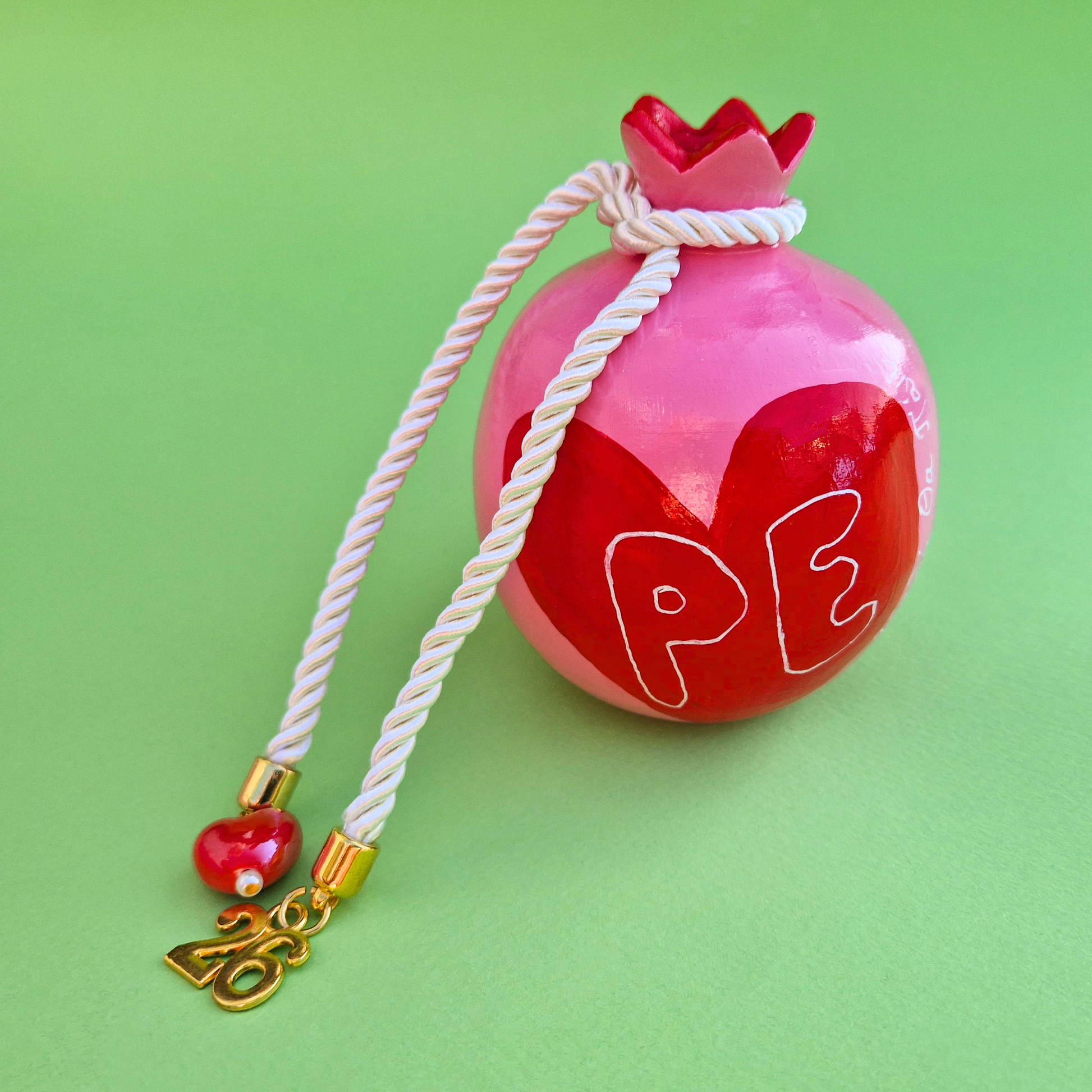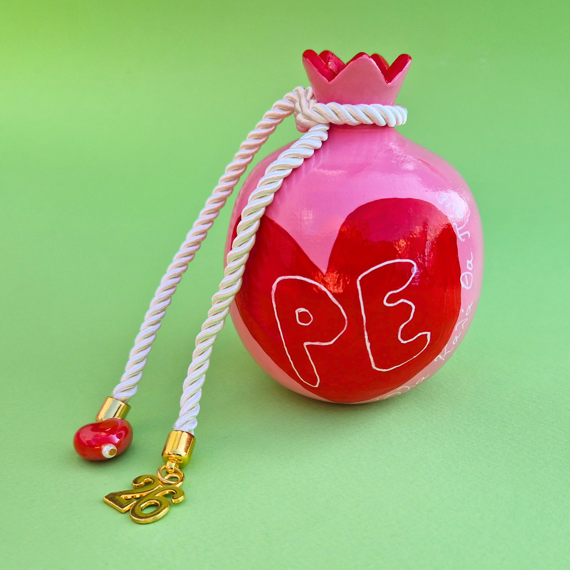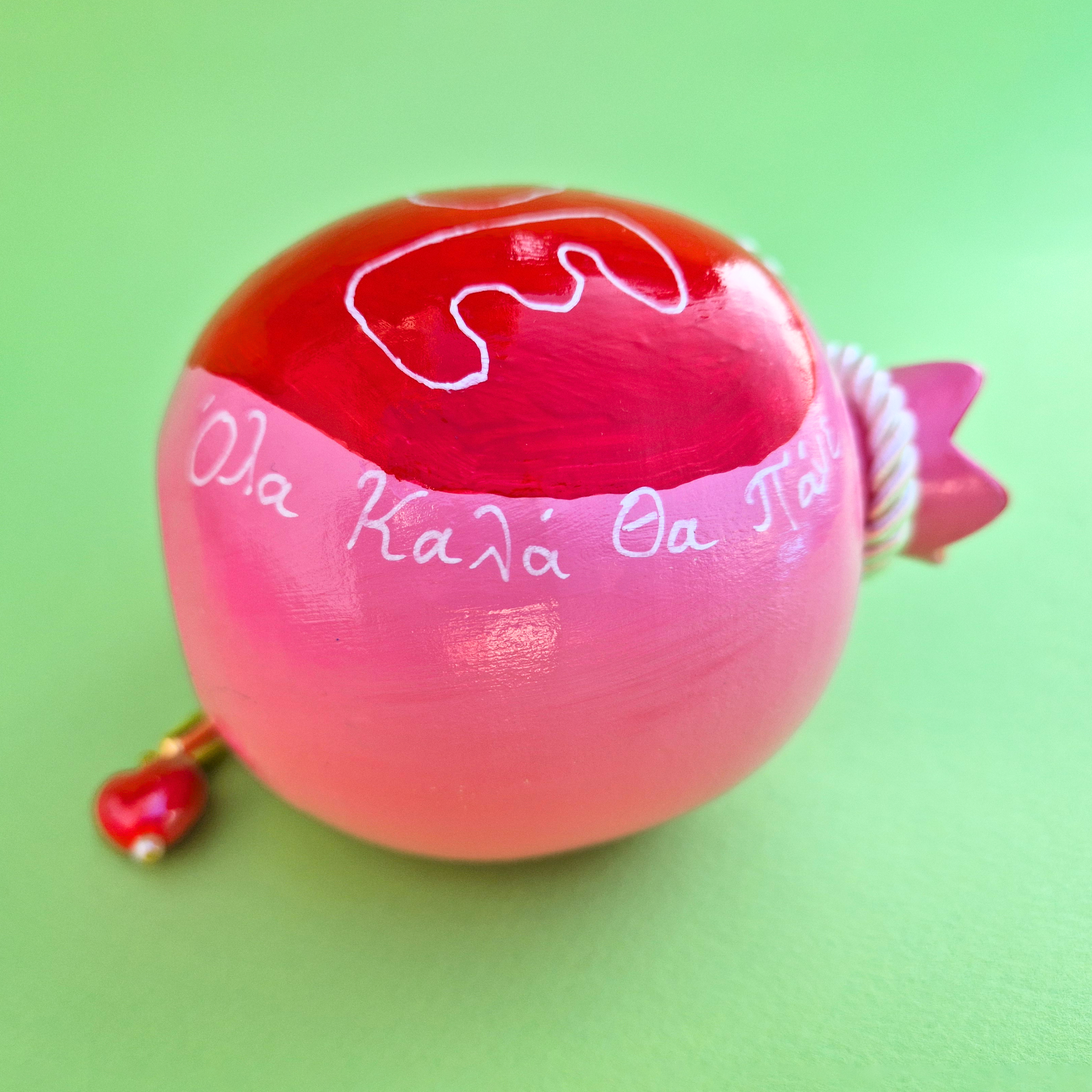 Το Επιτραπέζιο Χειροποίητο Κεραμικό Χριστουγεννιάτικο Γούρι 2026 Ροζ Ρόδι με Κόκκινη Καρδιά "Ρε Όλα Καλά θα Πάνε" είναι ένα μοναδικό, ζωγραφισμένο στο χέρι γούρι που αποπνέει θετική ενέργεια και αισιοδοξία. Το ρόδι συμβολίζει τύχη, αφθονία και καλοτυχία για τη νέα χρονιά, ενώ η κόκκινη καρδιά και το χαρούμενο μήνυμα υπενθυμίζουν ότι όλα θα πάνε καλά. Ένα χειροποίητο διακοσμητικό ή δώρο που γεμίζει το σπίτι σας ελπίδα και ζεστασιά.
