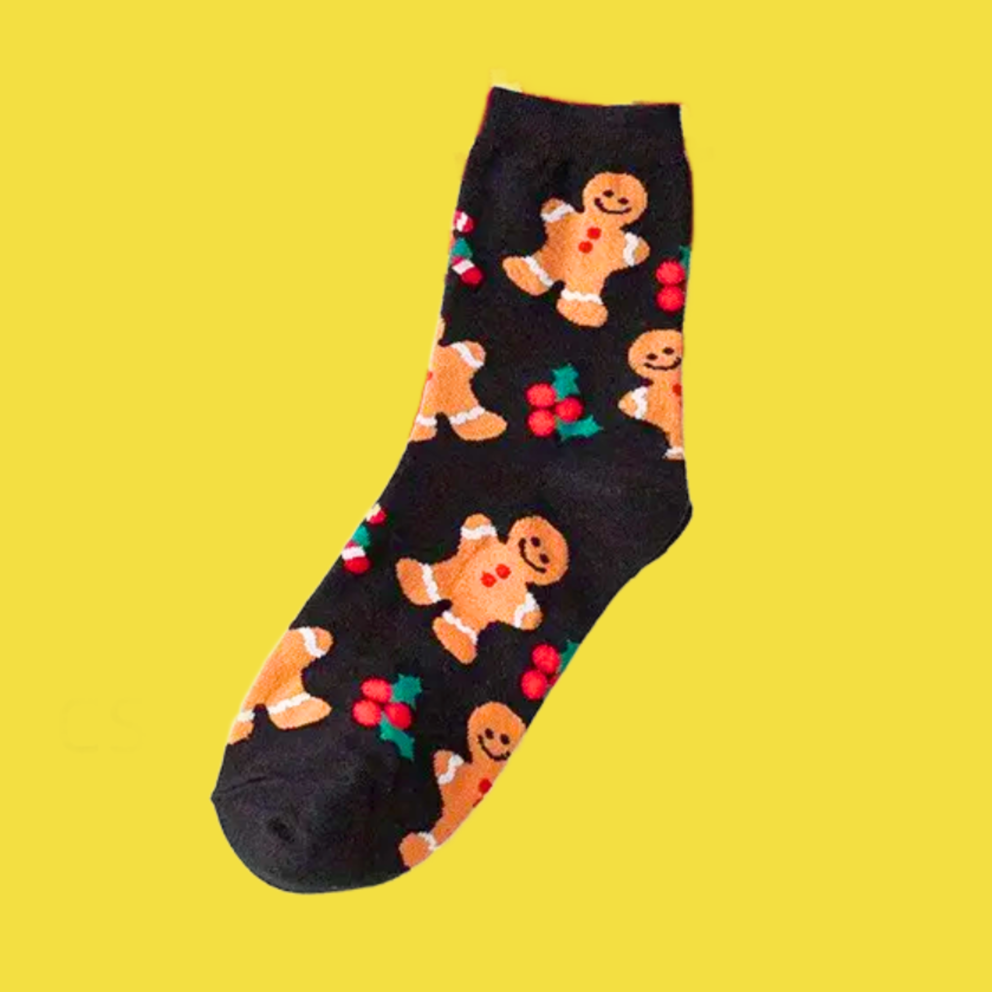 Οι Χριστουγεννιάτικες Κάλτσες Μαύρες με Σχέδια Μπισκότο Gingerbread φέρνουν παιχνιδιάρικη γιορτινή διάθεση και ζεστασιά στα πόδια σας. Άνετες και ποιοτικές, με μοναδικό festive σχέδιο, είναι ιδανικές για χριστουγεννιάτικες εμφανίσεις ή δώρα. Φόρεσέ τες και νιώσε τη μαγεία και τη χαρά των Χριστουγέννων!