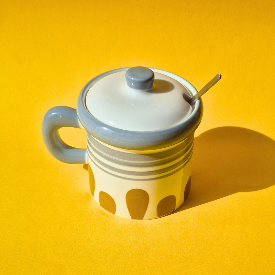 Κεραμική Χρωματιστή Ρετρό Κούπα Γκρι με Κουταλάκι