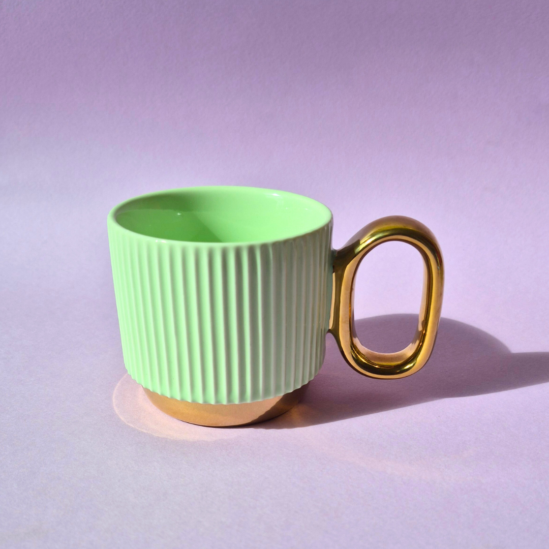 Κεραμική Φυστικί Γκοφρέ Κούπα με Χρυσή Λαβή και Χρυσό Πάτο