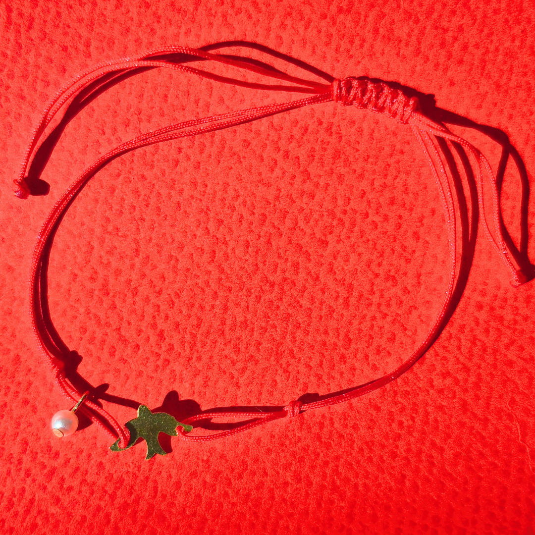 Κόκκινο Βραχιόλι με Μεταλλικό Μπρούτζινο Χελιδόνι και Μακραμέ Κούμπωμα