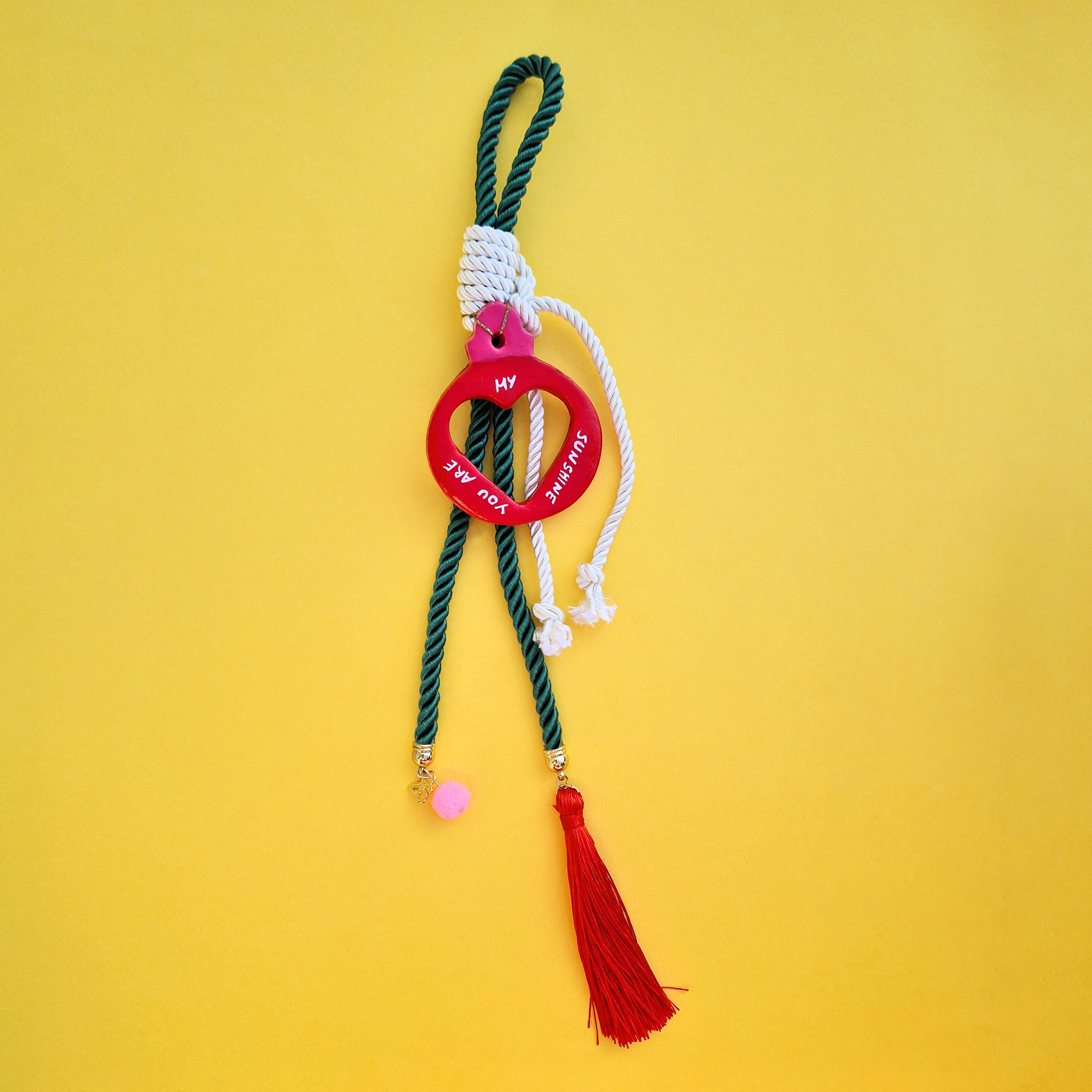 Το Κρεμαστό Χειροποίητο Κεραμικό Χριστουγεννιάτικο Γούρι 2026 "You Are My Sunshine" είναι ένα μοναδικό, ζωγραφισμένο στο χέρι κεραμικό γούρι γεμάτο φως και θετική ενέργεια. Με κυπαρισσί και λευκό κορδόνι, κόκκινη φούντα και ροζ πομ-πομ, αποπνέει αγάπη και αισιοδοξία — το ιδανικό γούρι για το 2026 για εσάς ή τα αγαπημένα σας πρόσωπα.