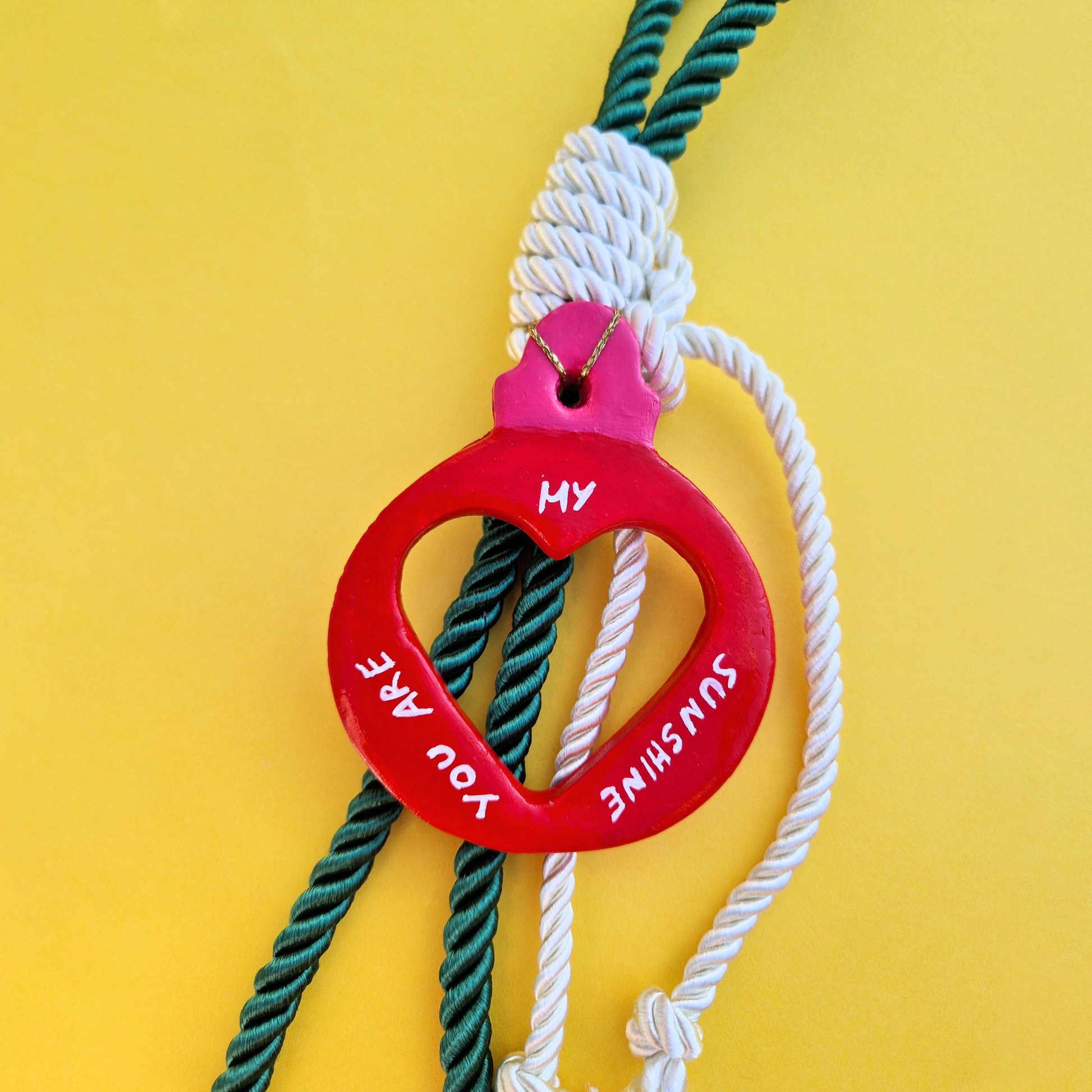 Κρεμαστό Χειροποίητο Κεραμικό Χριστουγεννιάτικο Γούρι 2026 You Are My Sunshine με Καρδιά