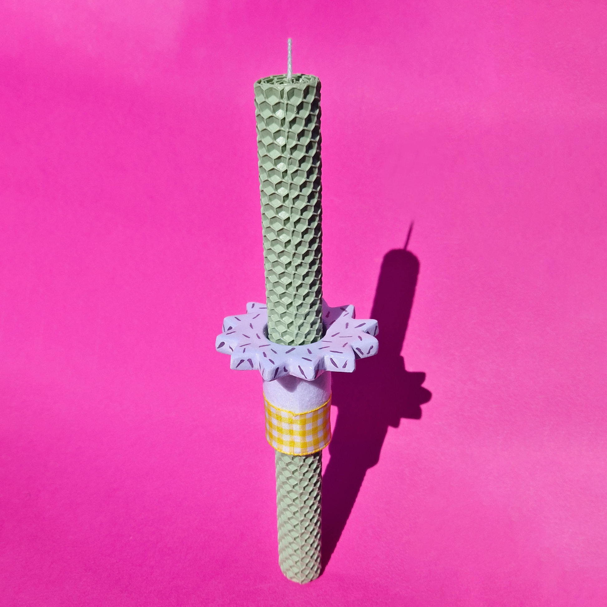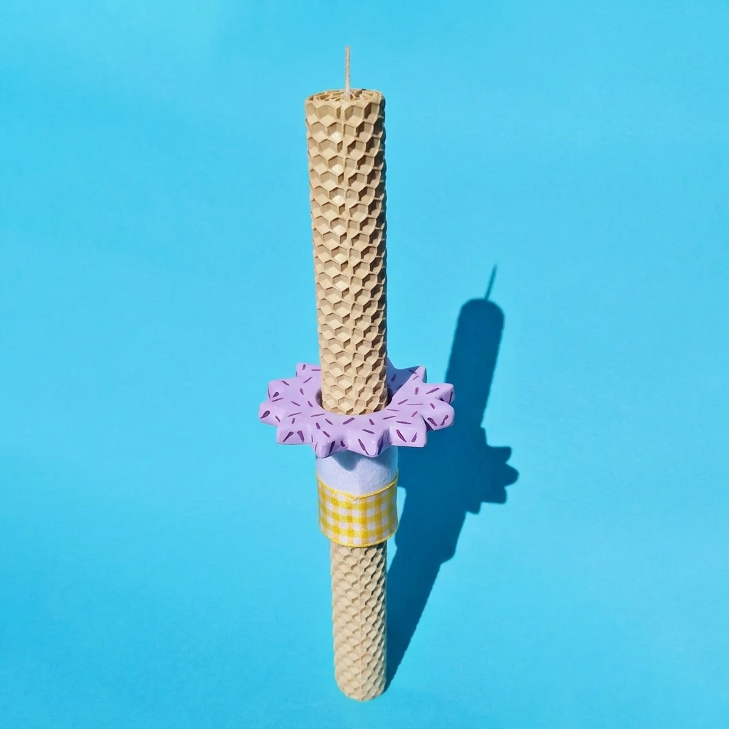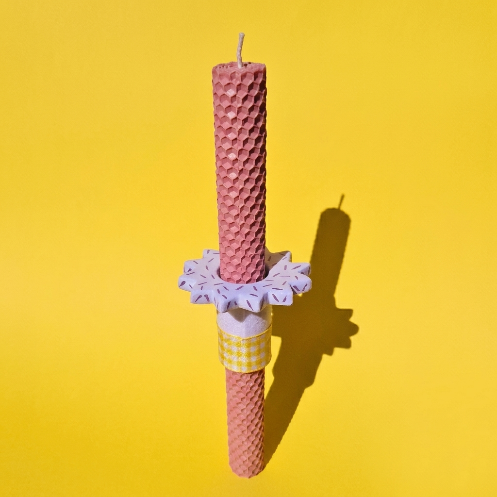 Χαρίστε ένα ξεχωριστό φως φέτος το Πάσχα με τη χειροποίητη λαμπάδα από φυσικό μελισσοκέρι σε δροσερή φυστικί απόχρωση. Το μοναδικό κεραμικό λιλά στοιχείο προσδίδει μια σύγχρονη αισθητική, κάνοντάς την ένα φανταστικό δώρο για το βαφτιστήρι σας. Επιλέγοντας αυτή τη χειροποίητη δημιουργία, προσφέρετε ένα αντικείμενο με ψυχή και το μεθυστικό άρωμα της φύσης, δημιουργώντας αναμνήσεις που θα μείνουν ανεξίτηλες στις καρδιές των αγαπημένων σας!