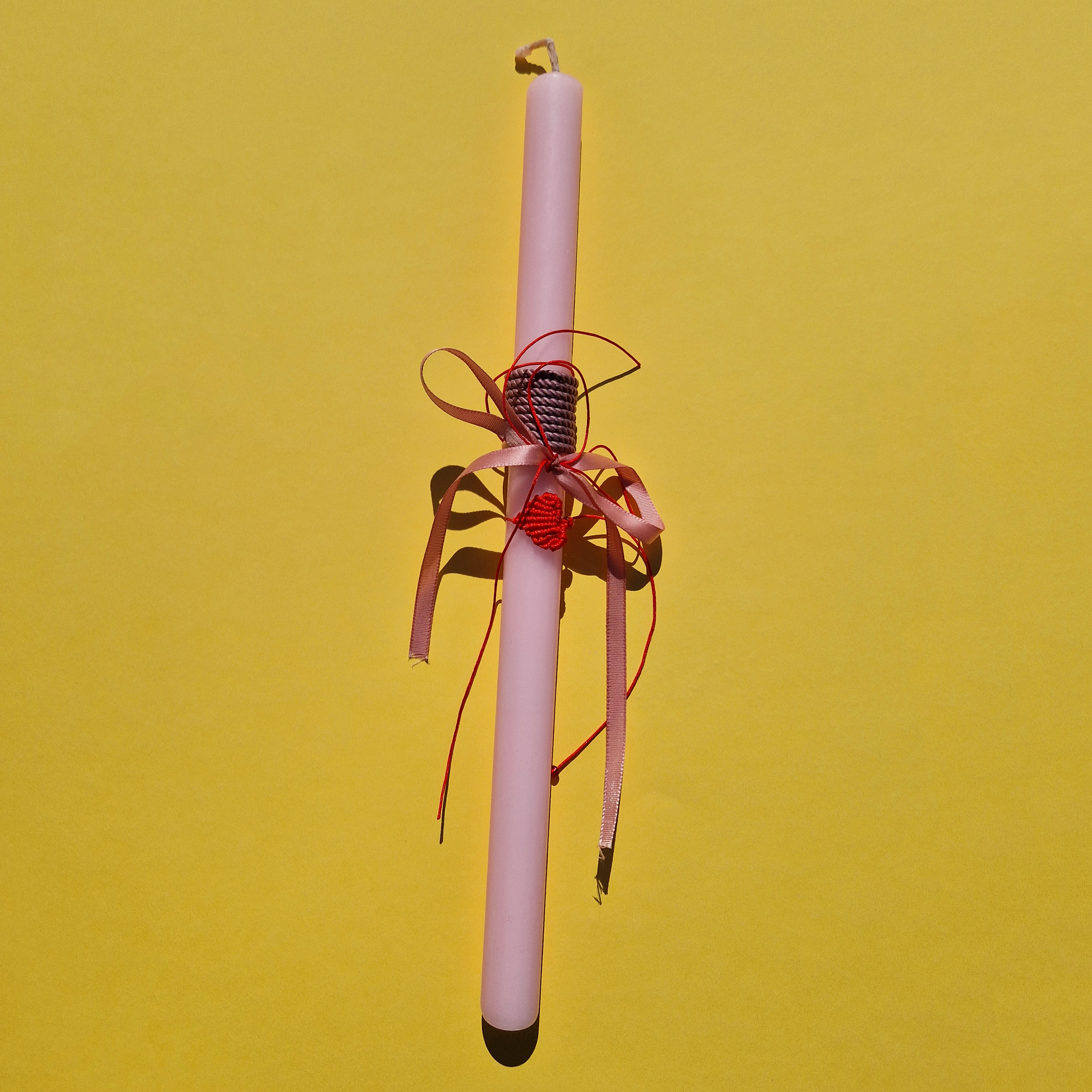 Πασχαλινή Λαμπάδα Χειροποίητη Αρωματική Ροζ με Μακραμέ Βραχιόλι Καρδιά