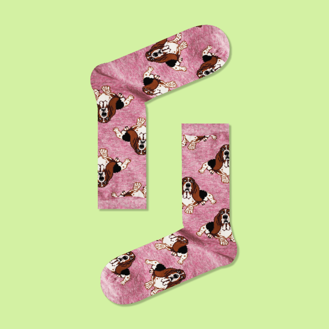 Οι Πολύχρωμες Κάλτσες Basset Hound σε ροζ φόντο γεμίζουν την καθημερινότητά σου με γλύκα και παιχνιδιάρικη διάθεση. Ιδανικές για τους λάτρεις των σκυλιών και του μοναδικού στυλ, αυτές οι άνετες, χαρούμενες κάλτσες θα σου φτιάχνουν τη διάθεση με κάθε βήμα. Γιατί η χαρά κρύβεται στις λεπτομέρειες!