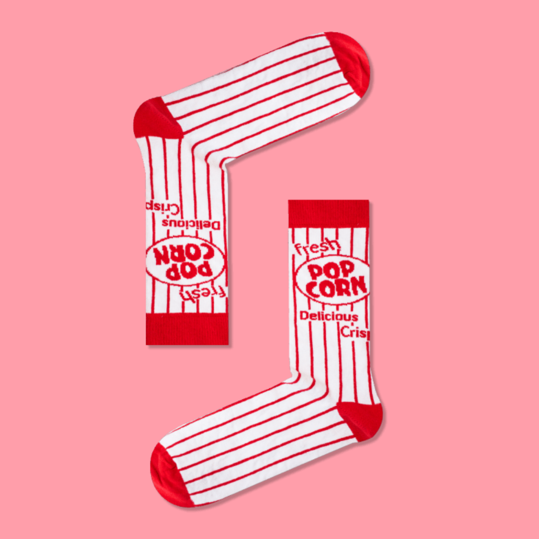 Αναβάθμισε το στυλ σου με τις πολύχρωμες κάλτσες Pop Corn σε κόκκινο και άσπρο χρώμα! Ιδανικές για κάθε στιγμή της ημέρας, αυτές οι κάλτσες συνδυάζουν άνεση και χιούμορ. Διατίθεται σε δύο μεγέθη και προσφέρουν φρεσκάδα και μοναδικότητα. Αφήστε τη διασκέδαση να απογειώσει την εμφάνισή σας!