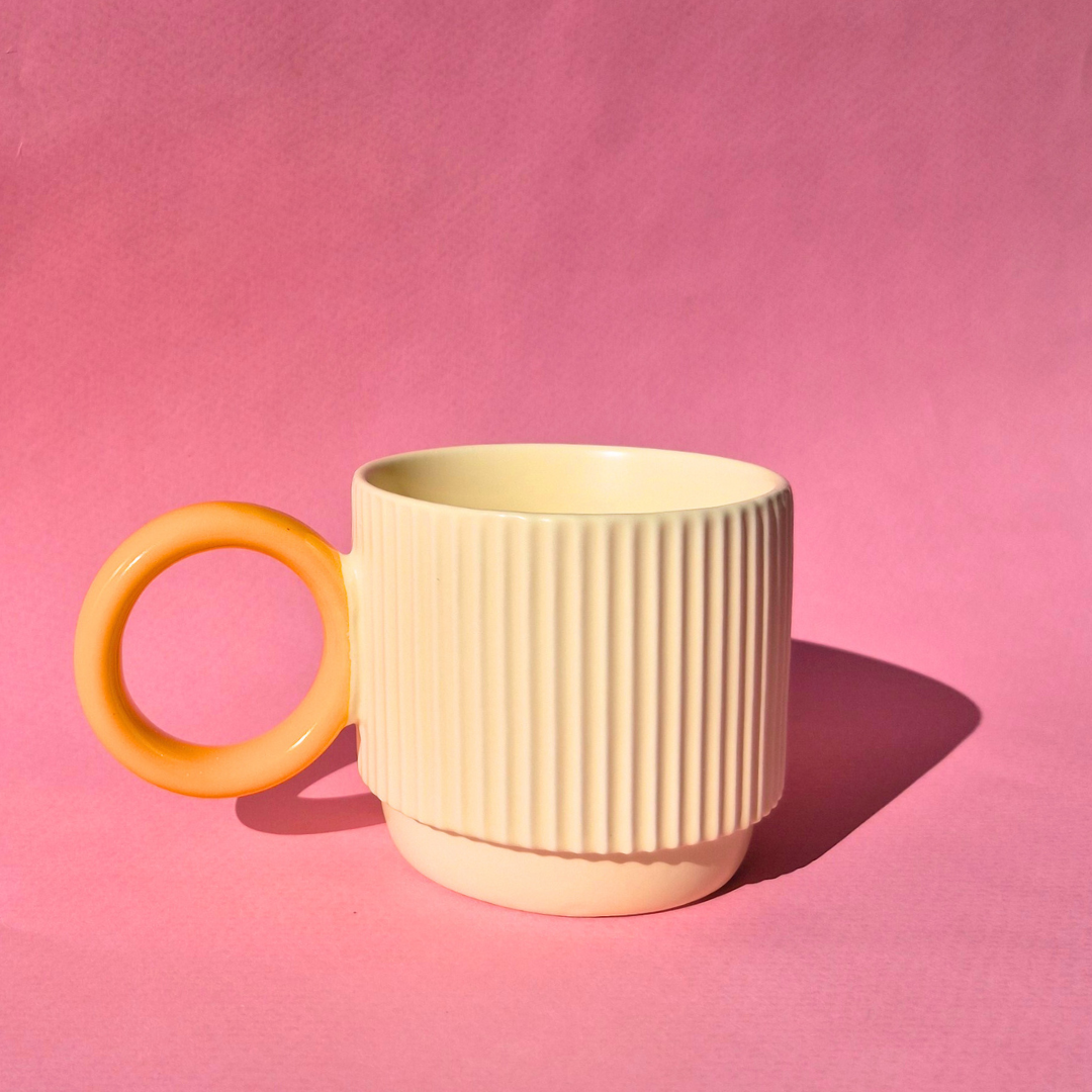 Πορσελάνινη Μπεζ Γκοφρέ Κούπα με Στρογγυλή Πορτοκαλί Λαβή