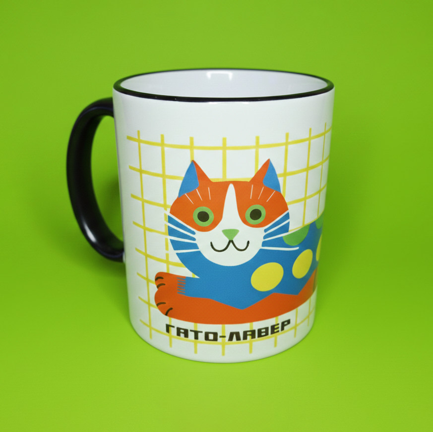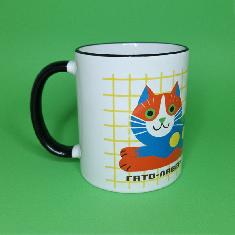 Λατρέψτε κάθε πρωινό σας με την πορσελάνινη κούπα «Γάτο-Λάβερ»! Η πολύχρωμη, παιχνιδιάρικη γατούλα σε κίτρινο φόντο με το χαρακτηριστικό δίχτυ, σε συνδυασμό με το κομψό μαύρο χείλος και χερούλι, απογειώνει το στυλ σας. Το απόλυτο δώρο για κάθε cat lover που θέλει να ξεκινά τη μέρα του με τρυφερότητα και θετική ενέργεια!