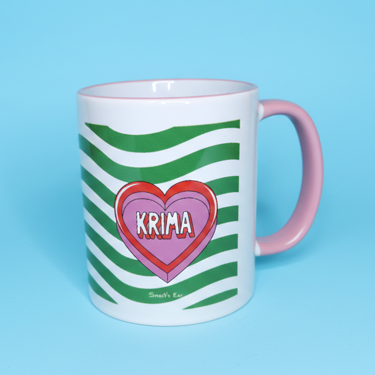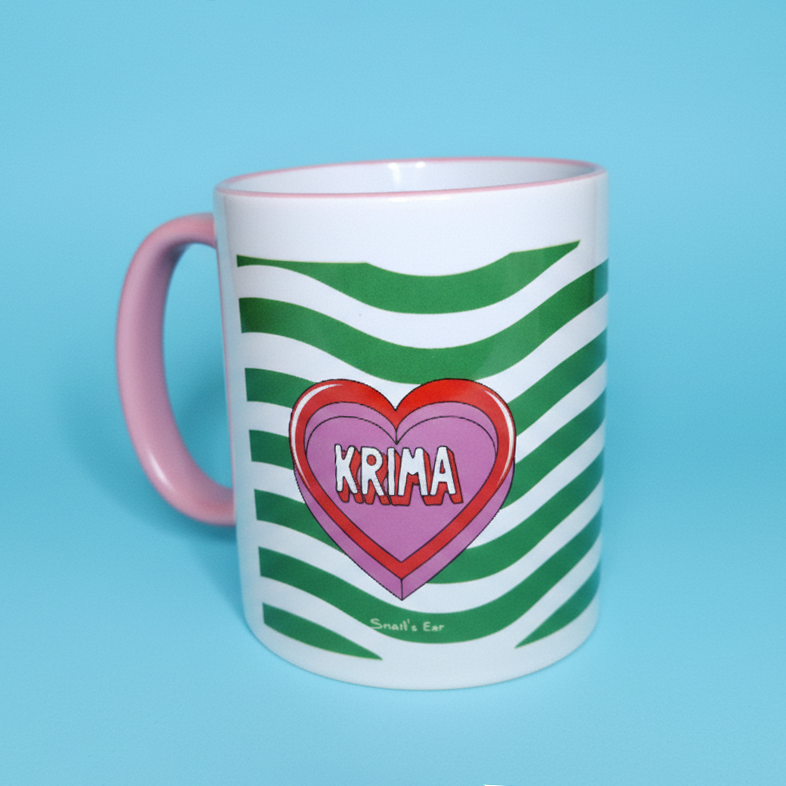 Αυτή η πορσελάνινη κούπα «ΚΡΙΜΑ» είναι το απόλυτο statement για τις ημέρες που η καρδιά σου θέλει να εκφραστεί με χιούμορ! Με έντονη πράσινη ρίγα και παιχνιδιάρικο ροζ χείλος και χερούλι, συνδυάζει το pop design με το συναίσθημα. Ένα μοναδικό δώρο που θα φέρει χαμόγελα σε κάθε «κρίμα» της καθημερινότητας.