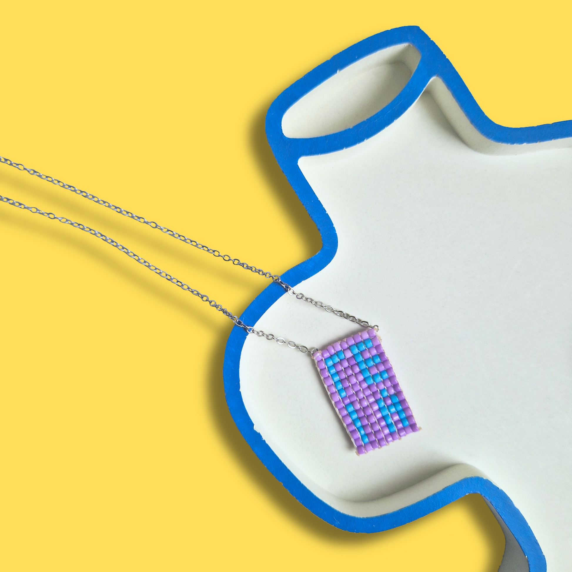Χειροποίητο κολιέ "Γεια" με λιλά και γαλάζιες χάντρες που σχηματίζουν τη λέξη "ΓΕΙΑ", σε ατσάλινη ασημένια ή χρυσή αλυσίδα που δεν μαυρίζει ή με πετονιά για ανάλαφρο στυλ. Μοντέρνο και χαρούμενο, φτιαγμένο κατόπιν παραγγελίας για να μεταδίδει θετικότητα και να ταιριάζει στο δικό σας στυλ.