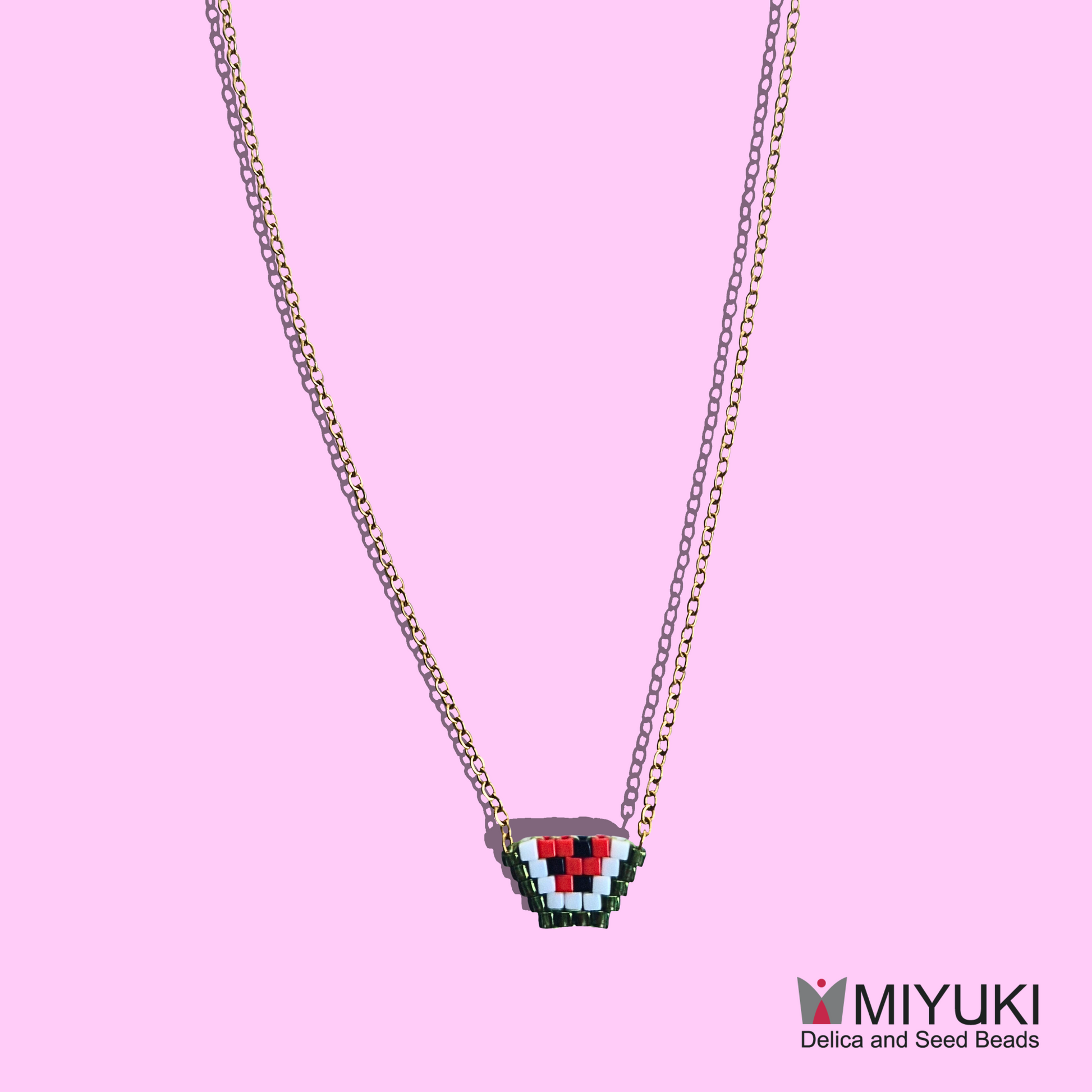 Χειροποίητο Κολιέ Καρπούζι από Χάντρες MIYUKI σε Ατσάλινη Χρυσή Αλυσίδα