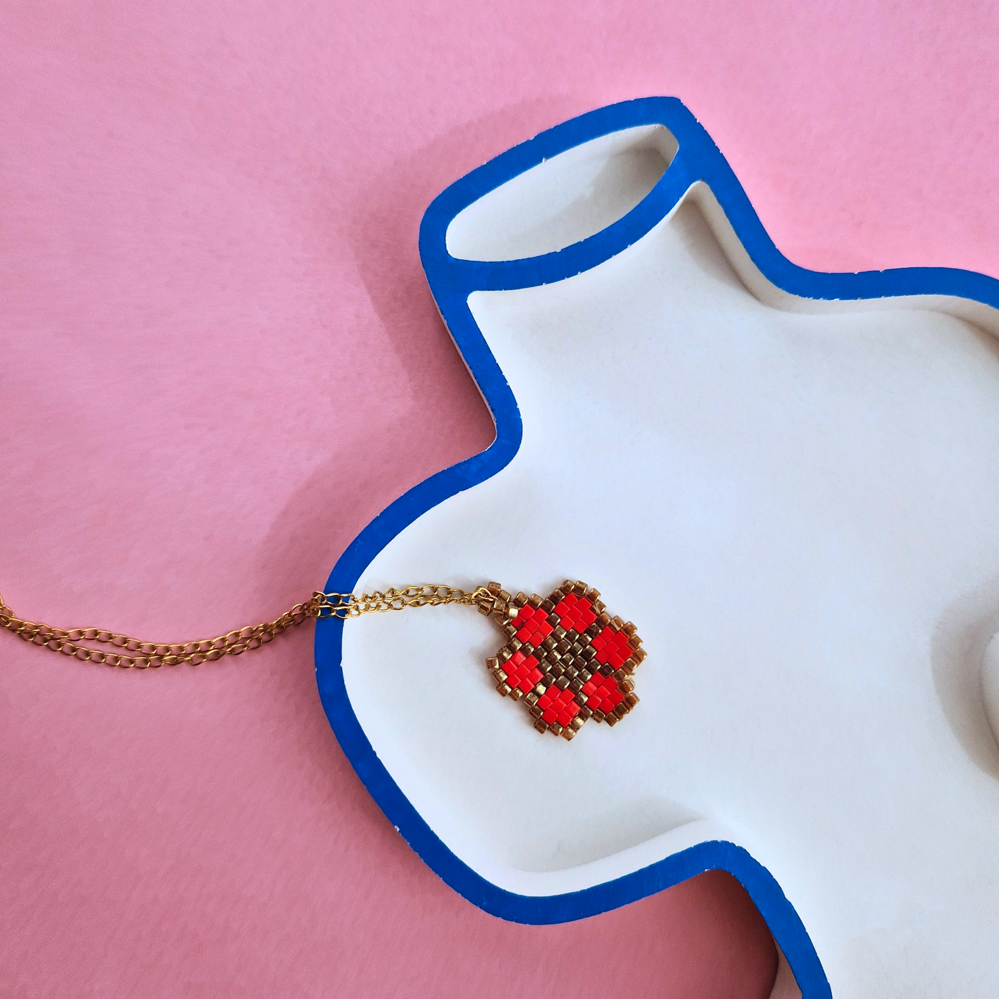 Αναδείξτε την κομψότητα με το Χειροποίητο Κολιέ Κόκκινο-Χρυσό Λουλούδι από Χάντρες Miyuki σε ατσάλινη χρυσή αλυσίδα. Το λουλούδι, σύμβολο πάθους και δύναμης, προσφέρει μία μοναδική αίσθηση κομψότητας και ζεστασιάς. Επιλέξτε ανάμεσα σε ατσάλινη χρυσή αλυσίδα ή πετονιά. Φτιαγμένο κατόπιν παραγγελίας και αποστολή στο σπίτι σας.