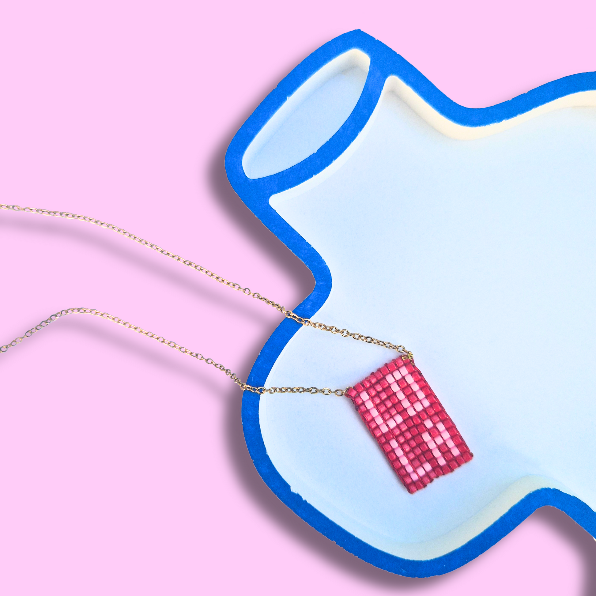 Αναδείξτε την παιχνιδιάρικη πλευρά σας με το χειροποίητο κολιέ LOLA από ροζ χάντρες με κόκκινα γράμματα, σε ατσάλινη χρυσή αλυσίδα. Υποαλλεργικό, δεν μαυρίζει και χαρίζει ρομαντικό, νεανικό στυλ. Ιδανικό για δώρο ή προσωπική πινελιά. Διατίθεται και με ασημένια ατσάλινη αλυσίδα.