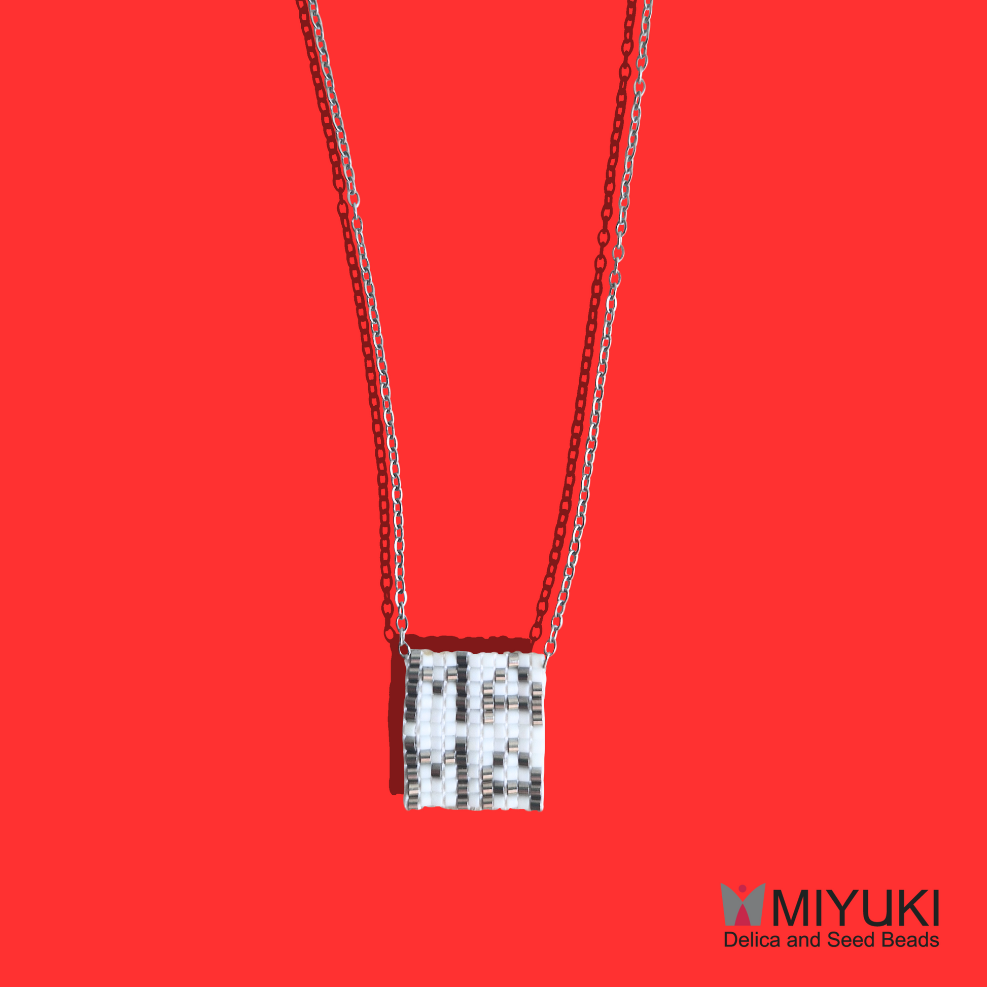 Χειροποίητο Κολιέ Μαμά από Λευκές Χάντρες MIYUKI και Ατσάλινες Χάντρες σε Ατσάλινη Ασημένια Αλυσίδα