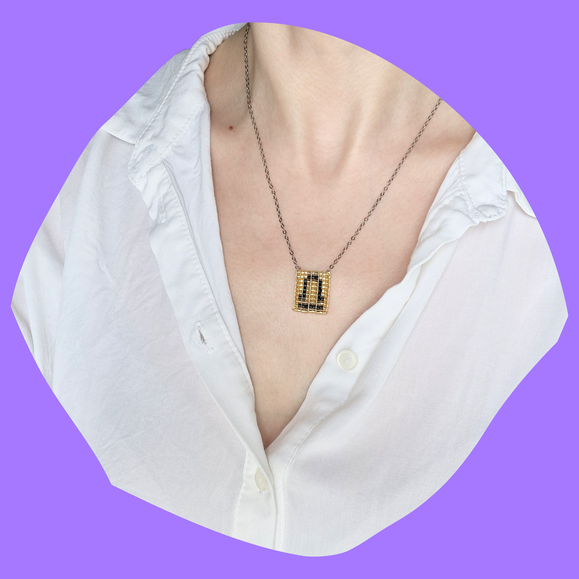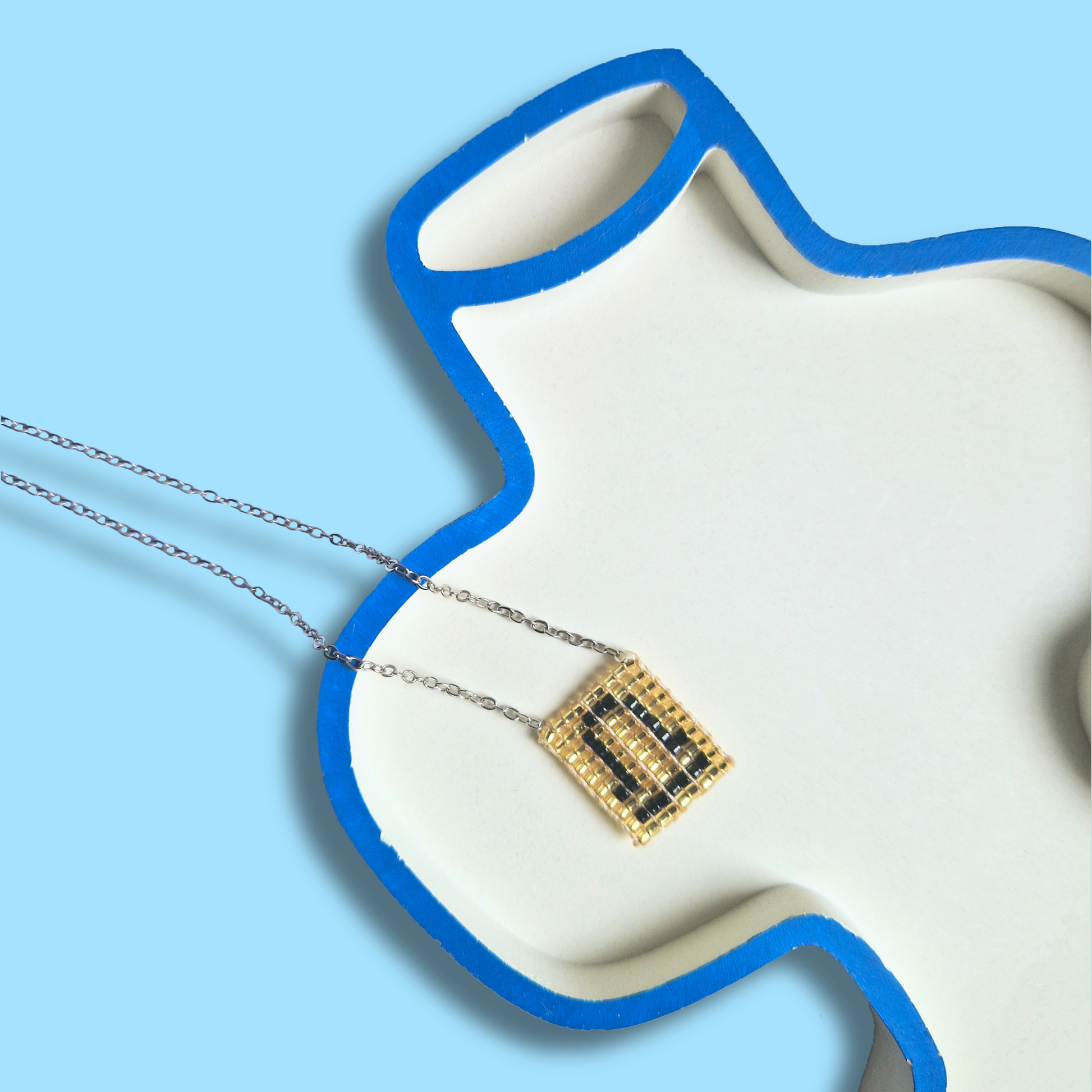 Χειροποίητο κολιέ με το ζώδιο σας σε χρυσό πλαίσιο από χάντρες, σε ατσάλινη ασημένια αλυσίδα που δεν μαυρίζει. Το κόσμημα διακοσμείται με μαύρες χάντρες που σχηματίζουν το ζώδιο, προσφέροντας στυλ και προσωπικότητα. Κατόπιν παραγγελίας, το ετοιμάζουμε με το ζώδιο της επιλογής σας, ενώ μπορείτε να επιλέξετε αλυσίδα ή πετονιά. Ιδανικό για δώρο με νόημα!