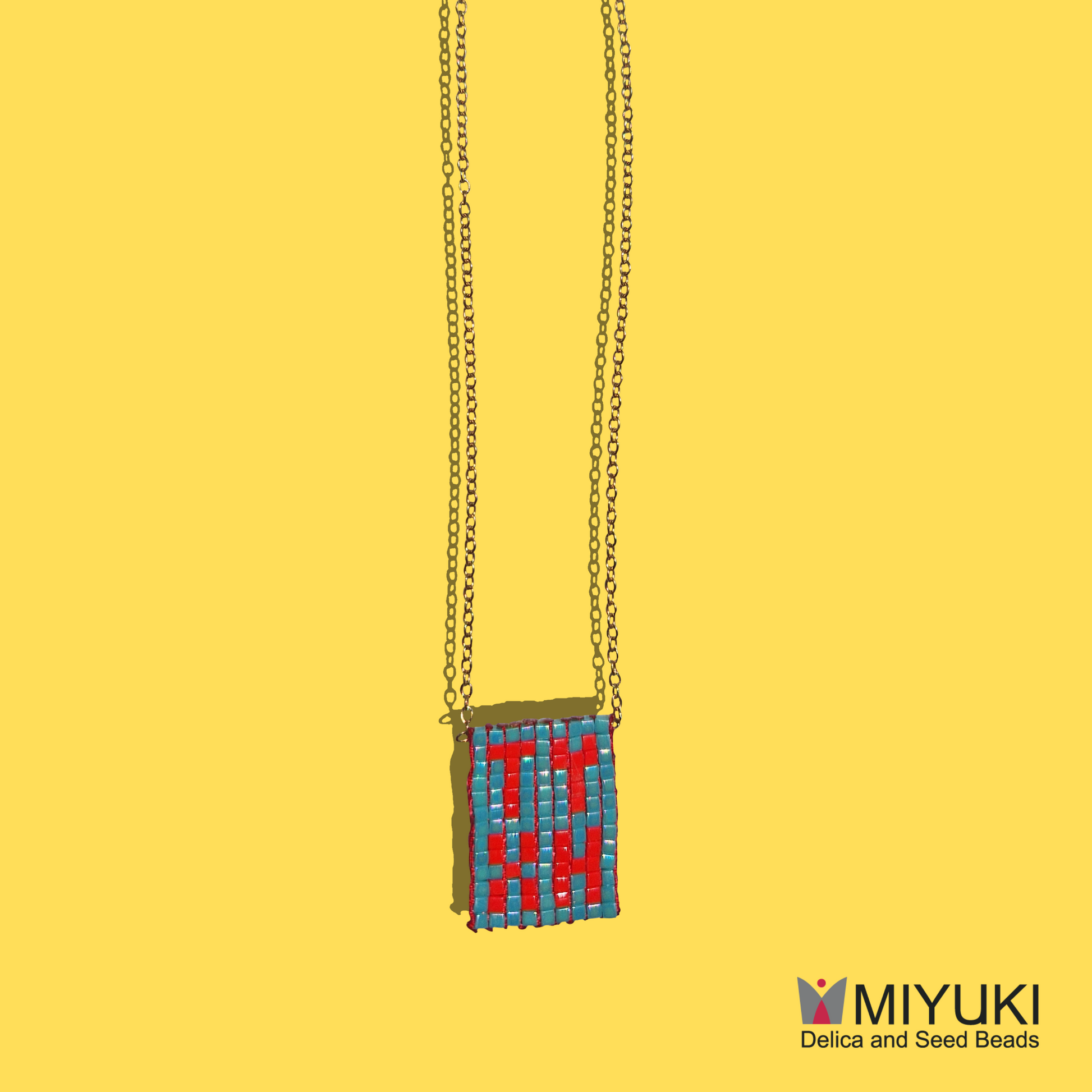 Φέρε την Τύχη πάντα μαζί σου με αυτό το καλοκαιρινό χειροποίητο κολιέ από χάντρες MIYUKI, σε τυρκουάζ τετράγωνο μοτίβο με κόκκινα γράμματα. Η ατσάλινη χρυσή αλυσίδα είναι υποαλλεργική και δεν μαυρίζει. Οι MIYUKI χάντρες ξεχωρίζουν για την υψηλή ποιότητα, συμμετρία και αντοχή στο χρόνο.