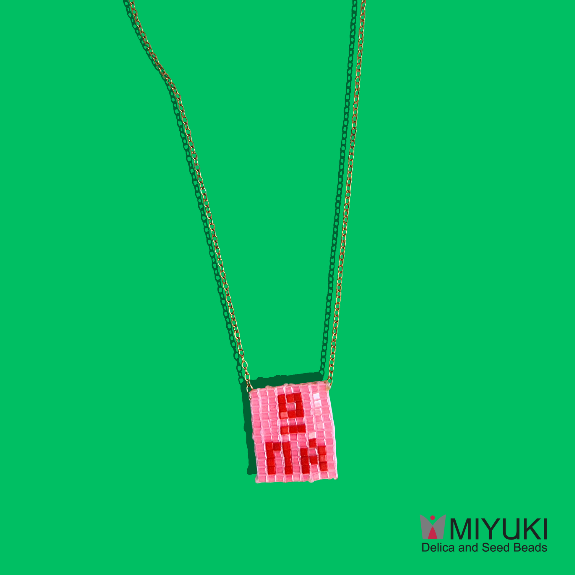 Δώστε χρώμα και ελληνικό ταμπεραμέντο στο καλοκαίρι σας με το χειροποίητο κολιέ "Ώπα", σε ροζ τετράγωνο μοτίβο με κόκκινα γράμματα από χάντρες MIYUKI. Οι ιαπωνικές MIYUKI ξεχωρίζουν για τη συμμετρία και τη σταθερότητα χρώματος. Η ατσάλινη χρυσή αλυσίδα είναι υποαλλεργική και δεν μαυρίζει.