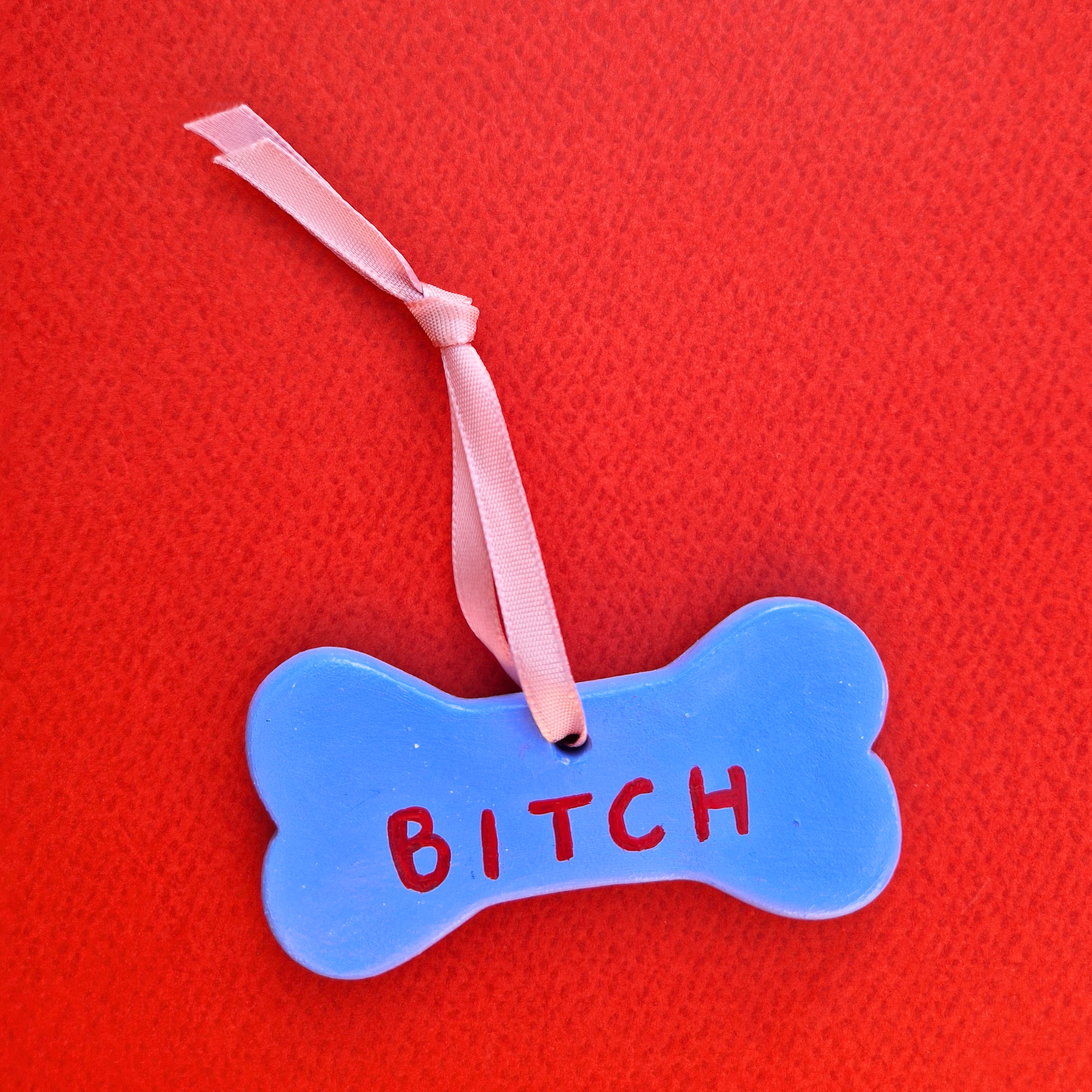 Χειροποίητο Χριστουγεννιάτικο Κεραμικό Στολίδι Γαλάζιο Κόκκαλο Bitch