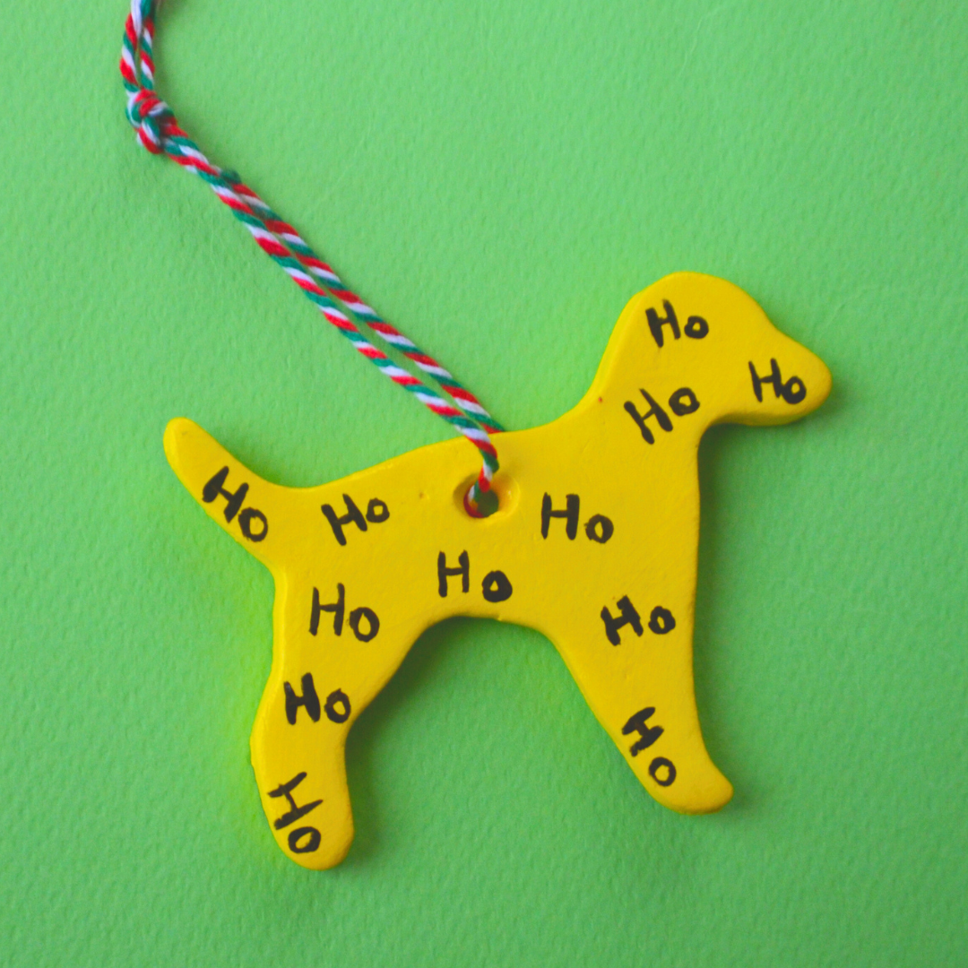 Χειροποίητο Χριστουγεννιάτικο Κεραμικό Στολίδι Κίτρινο Σκυλάκι Ho-Ho