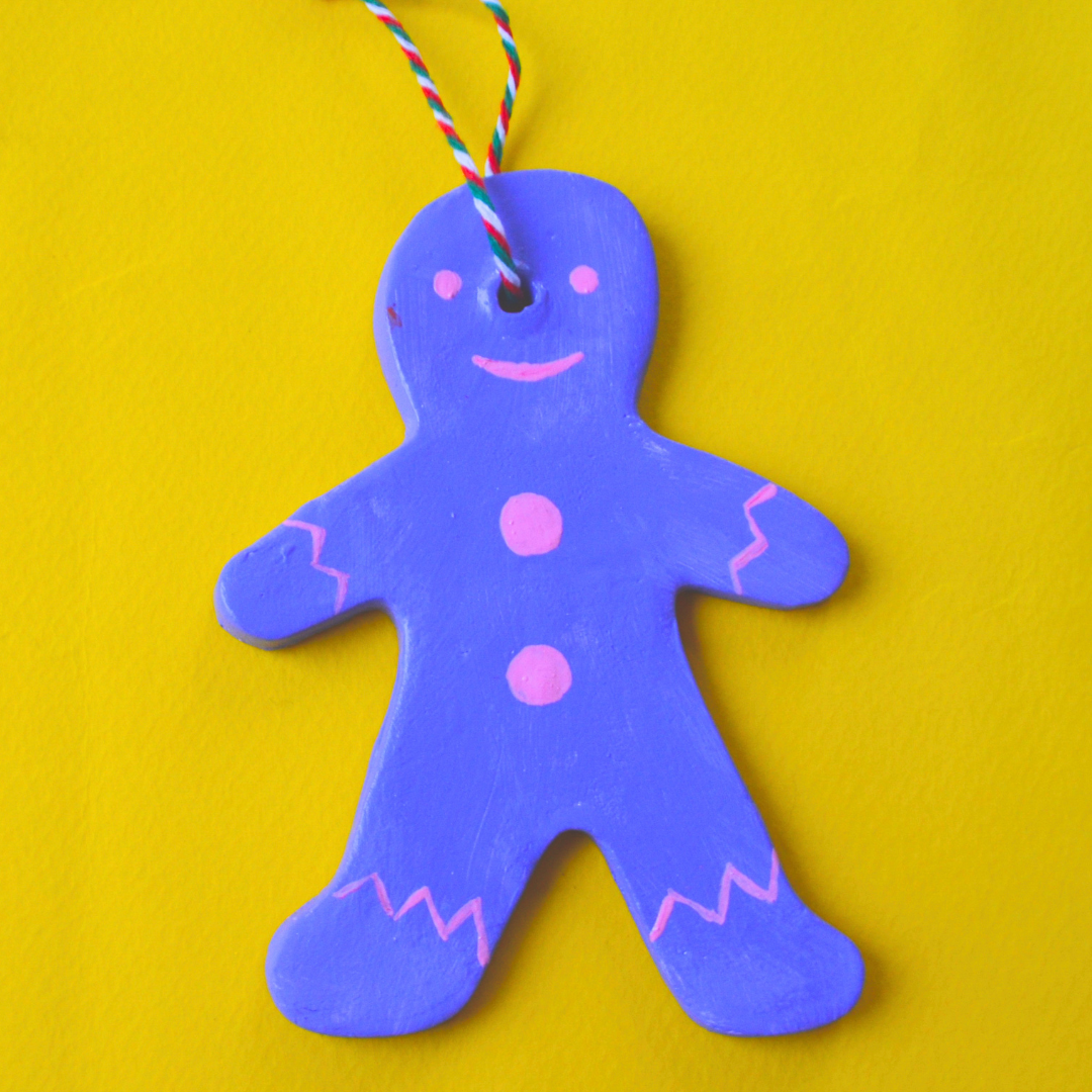 Χειροποίητο Χριστουγεννιάτικο Κεραμικό Στολίδι Λιλά Μπισκότο Gingerbread Man