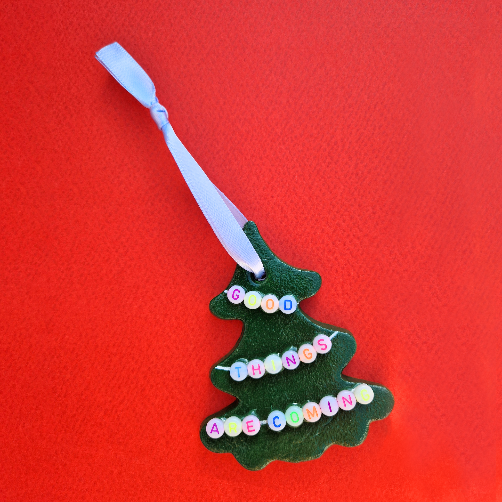 Χειροποίητο Χριστουγεννιάτικο Κεραμικό Στολίδι Πράσινο Έλατο Good Things Are Coming