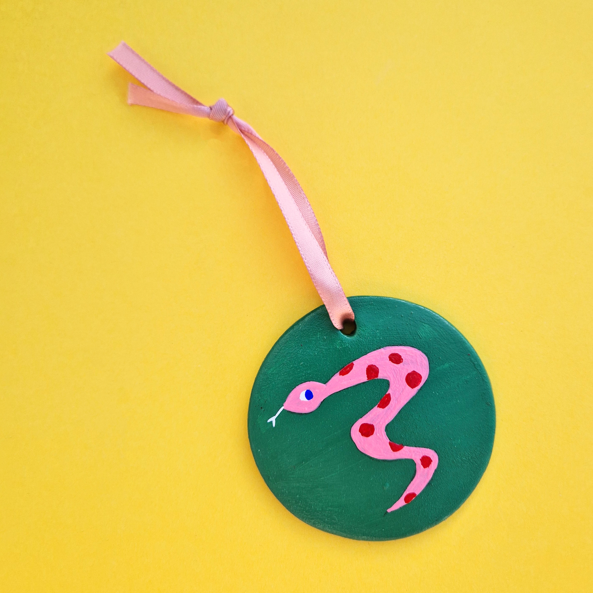 Χειροποίητο Χριστουγεννιάτικο Κεραμικό Στολίδι Πράσινο με Ροζ Φίδι