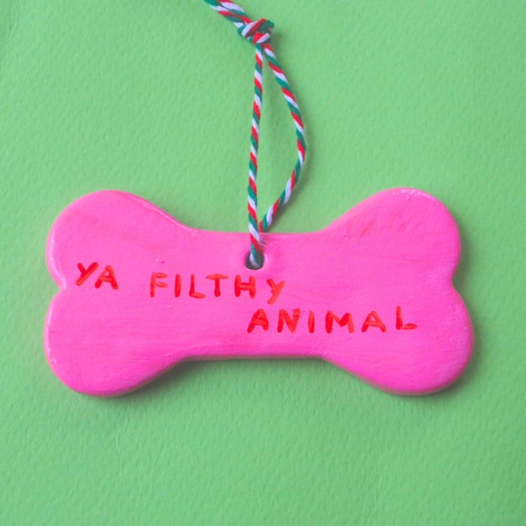Χειροποίητο Χριστουγεννιάτικο Κεραμικό Στολίδι Ροζ Κόκκαλο Merry Christmas Ya Filthy Animal