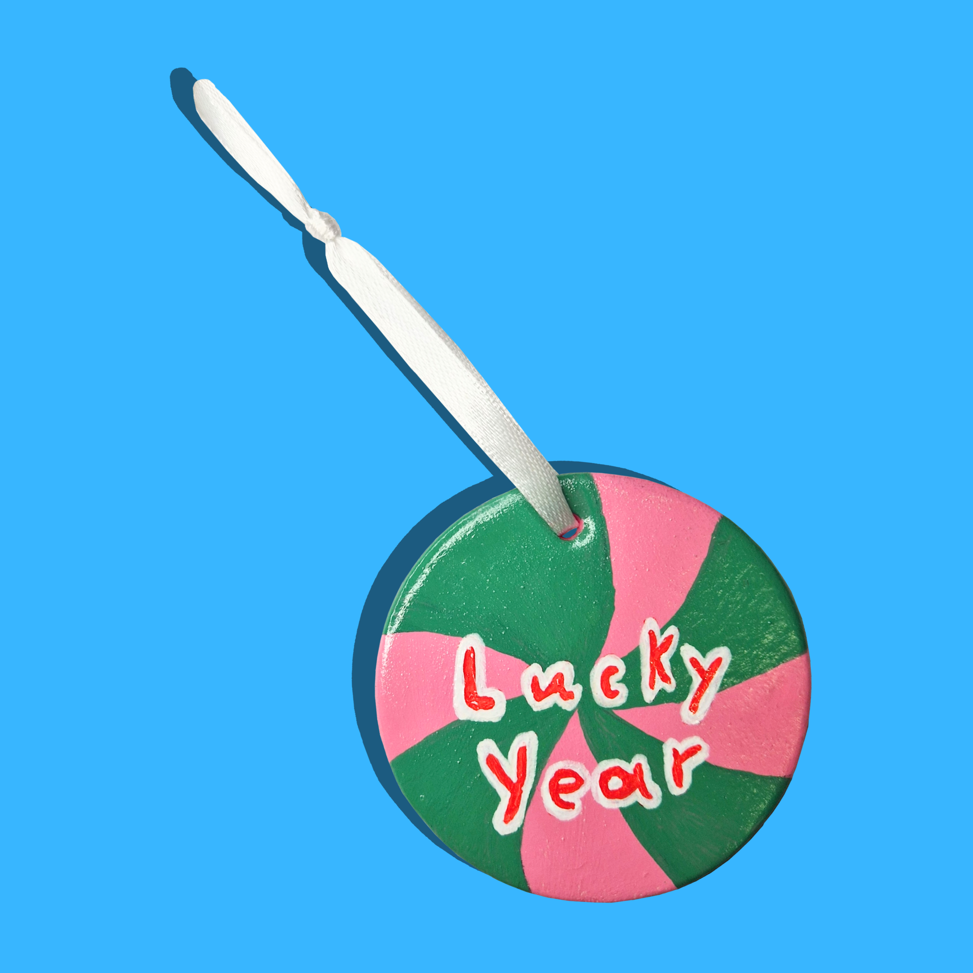 Χειροποίητο Χριστουγεννιάτικο Κεραμικό Στολίδι Ροζ-Πράσινο Lucky Year