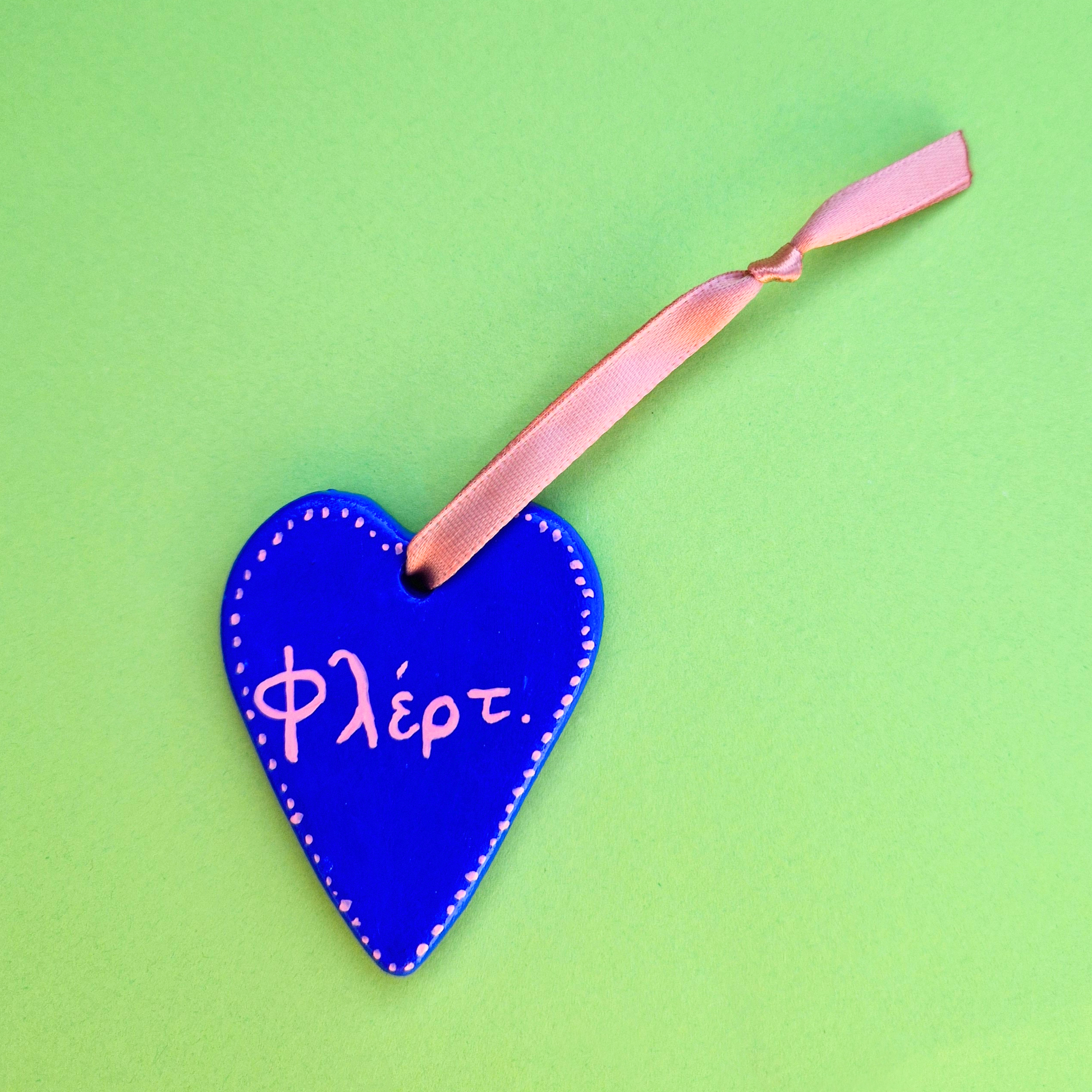 Χειροποίητο Χριστουγεννιάτικο Κεραμικό Στολίδι Σκούρο Μωβ Καρδιά Φλέρτ